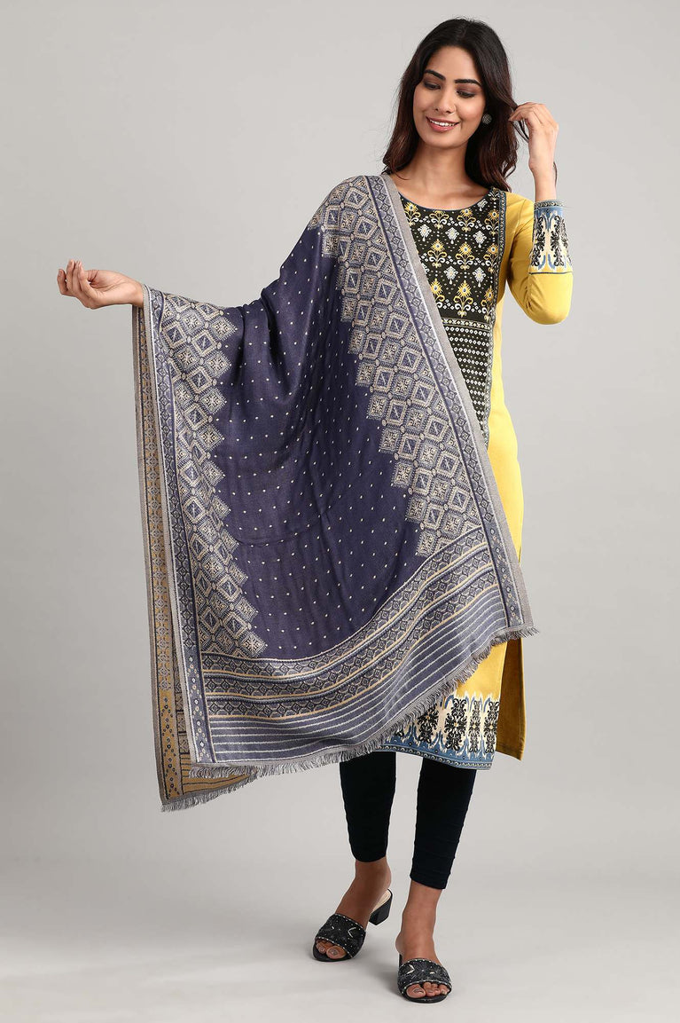 Blue Warm Jacquard Winter Kurta and Tights Set