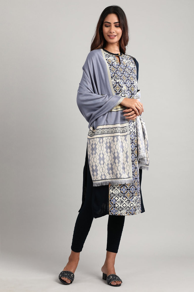 Turn Your Casual Look Into A Stylish One With This Knitted Dark Navy kurta. It Has Band Collar With Button Placket And Features Thread Embroidery.