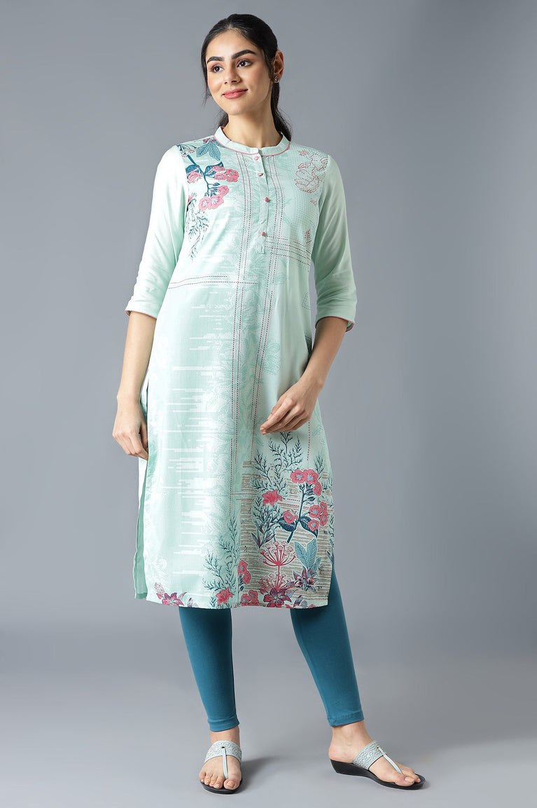 Crafted In Smooth And Breathable Cotton Dobby, This kurta Is Both Classic And Modern Aplenty. In Attactive Teal Colour, It Boasts An Unconventionally Placed Embroidery And A Sophisticated Silhouette.