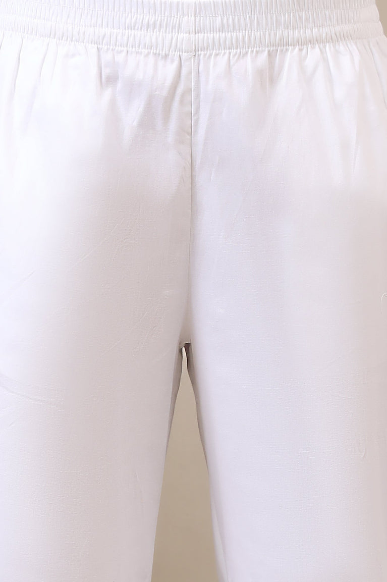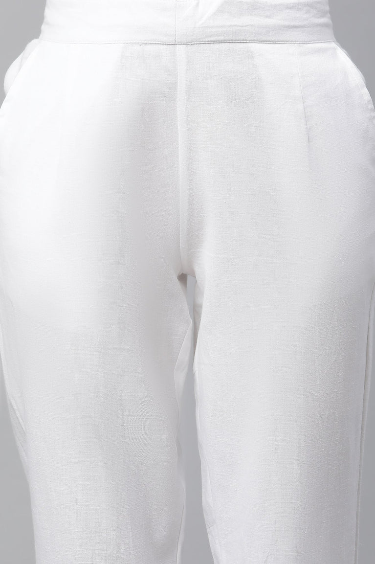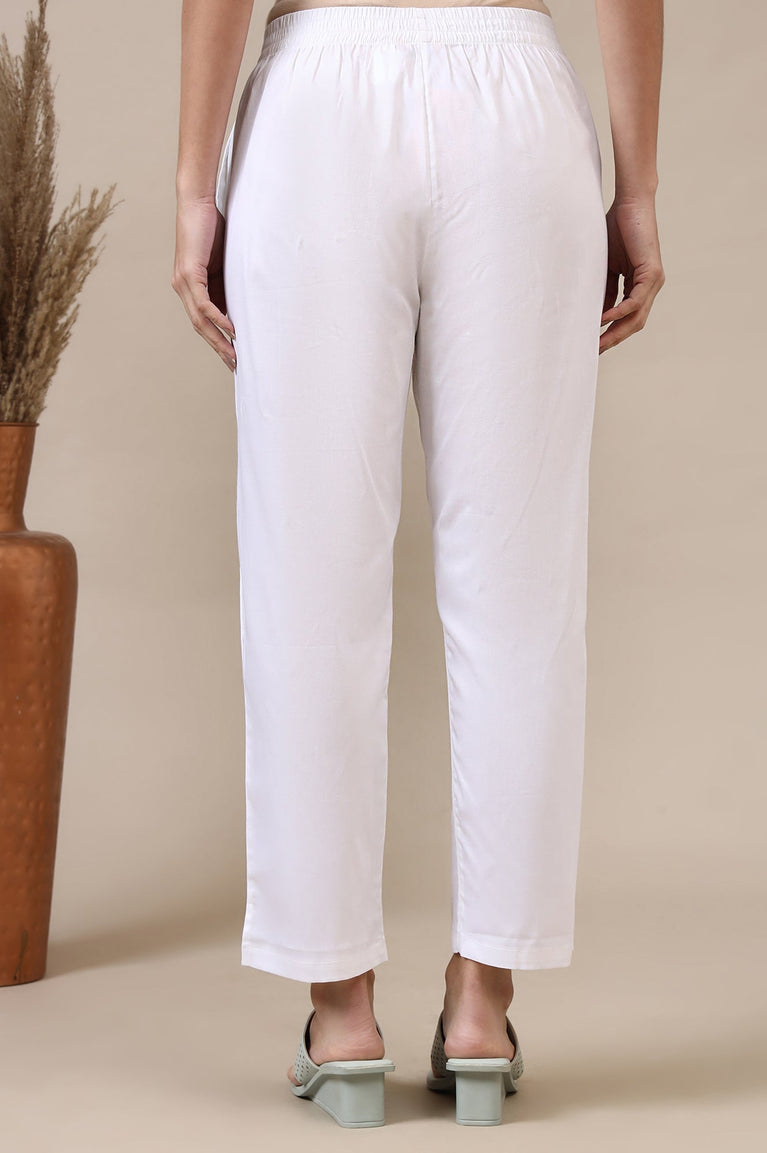 White Solid Cotton Blend Trouser Pants in Mid-Rise