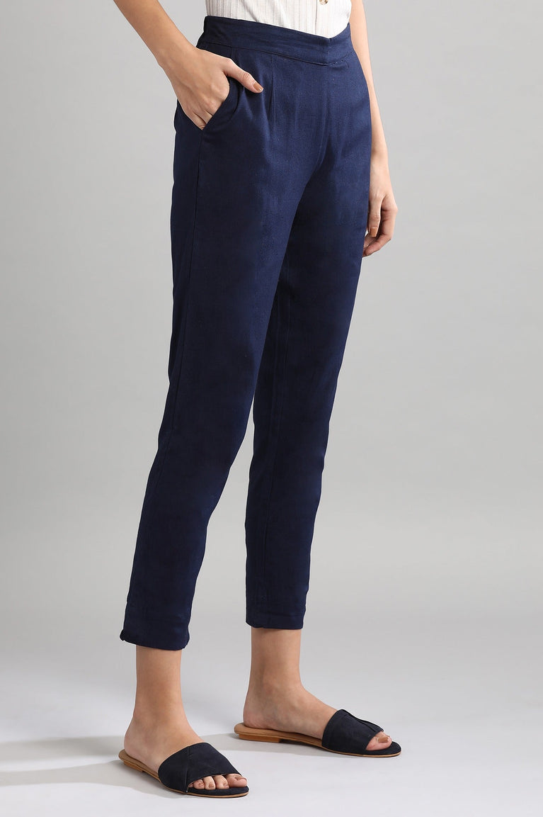 Blue solid regular fit trousers with roll-up hem with pocket and elasticated back.