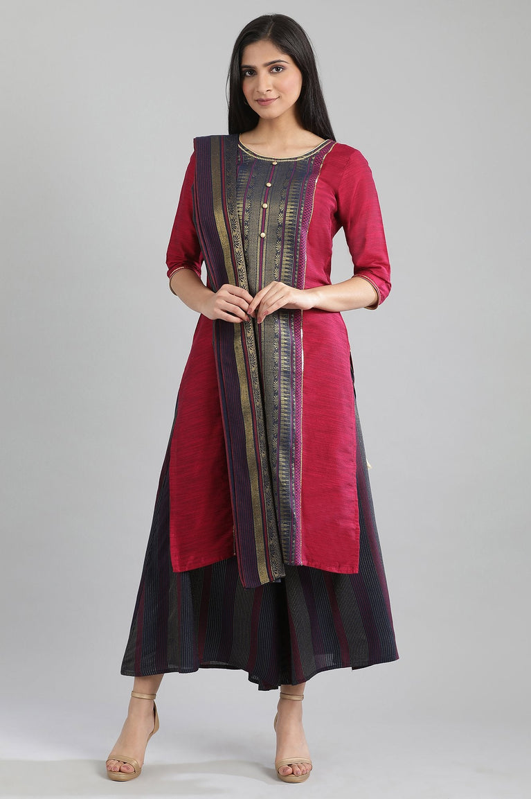 Blue Shantung LIVA Kurta with Gathered Sharara