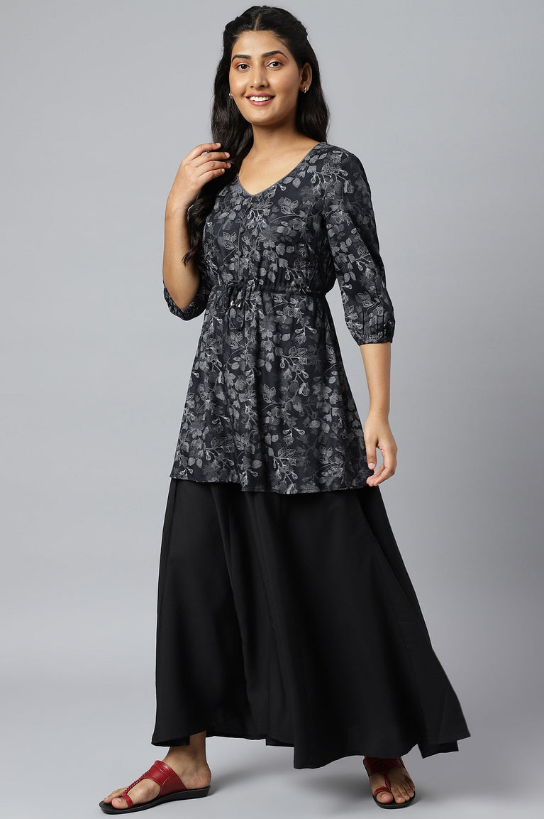 Black Solid Flared Rayon Palazzo With Pleated Detail