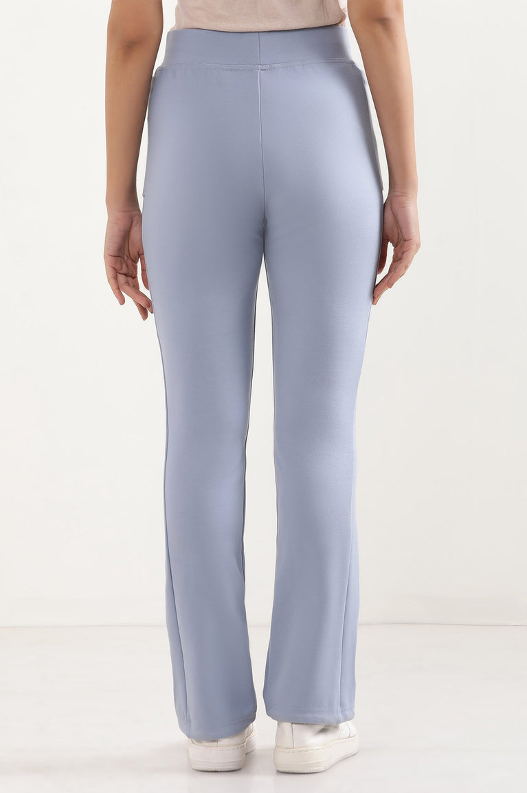 Crafted from premium knit fabric, these blue boot cut yoga pants offer unparalleled comfort for all-day wear. The elasticated waist ensures a snug fit, while the two functional side pockets provide convenience for carrying essentials. Perfect for athleisure or casual wear, these pants seamlessly blend style and functionality.
