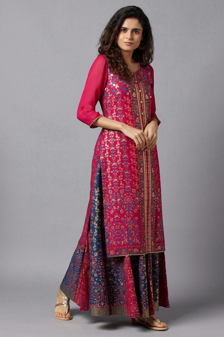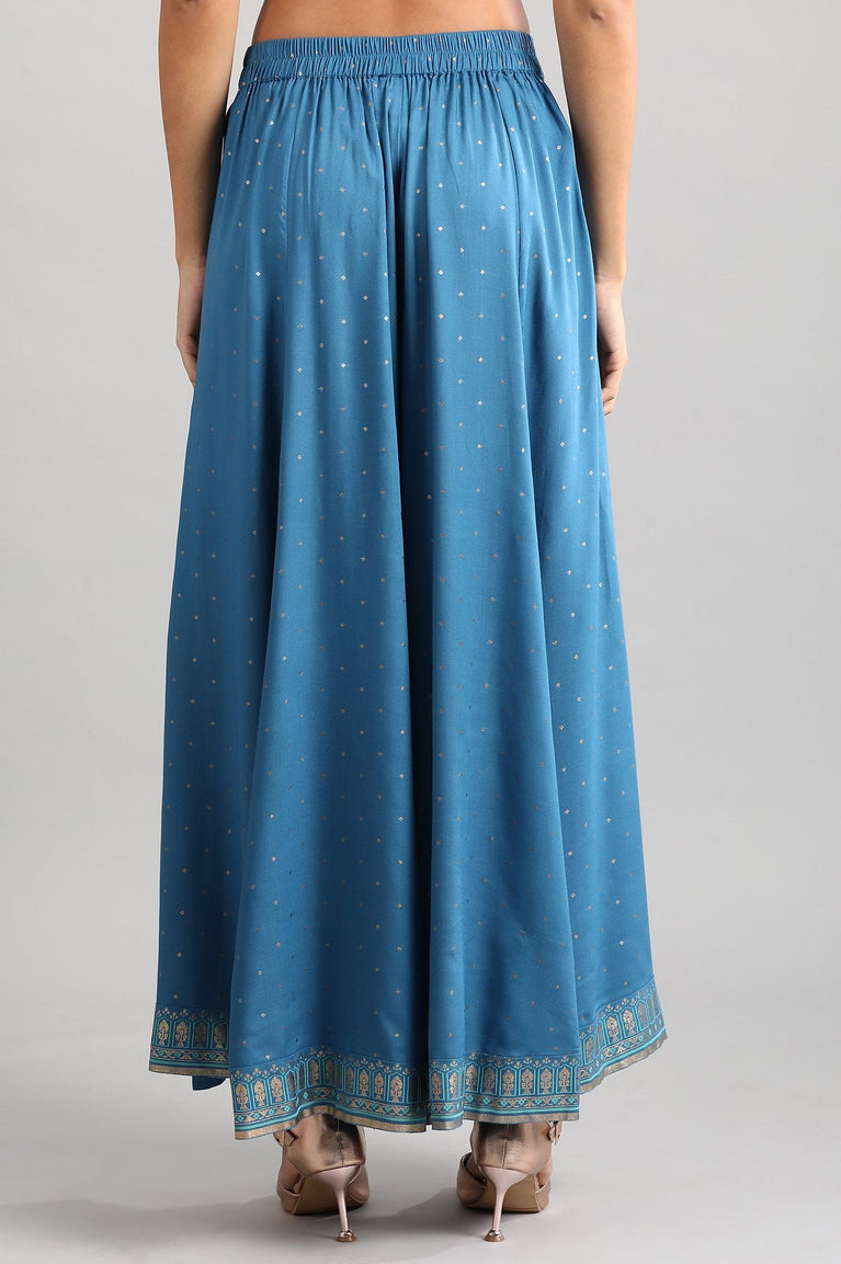 Elevate your look with these flowy flared culottes made in a monotonous blue foliage print in textured cotton fabric. It is a perfect combination of style and comfort.