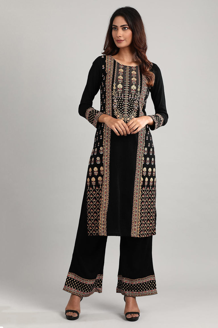 Crafted from a premium knit fabric with 360-degree stretch, these black printed tights redefine comfort and style. The elasticated 2-inch waistband ensures a snug fit, while the functional side pockets add practicality for your athleisure activities. Perfect for yoga sessions or casual outings, these tights offer a sleek silhouette that pairs effortlessly with tops or kurtis.