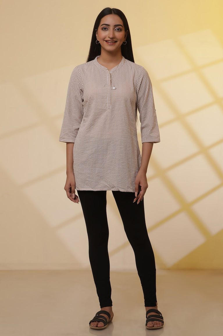 Beige Solid Skinny Fit Cotton Tights With Elasticated Waist