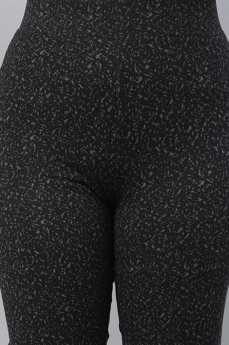 Black Printed Skinny Fit Tights With Elasticated Waist
