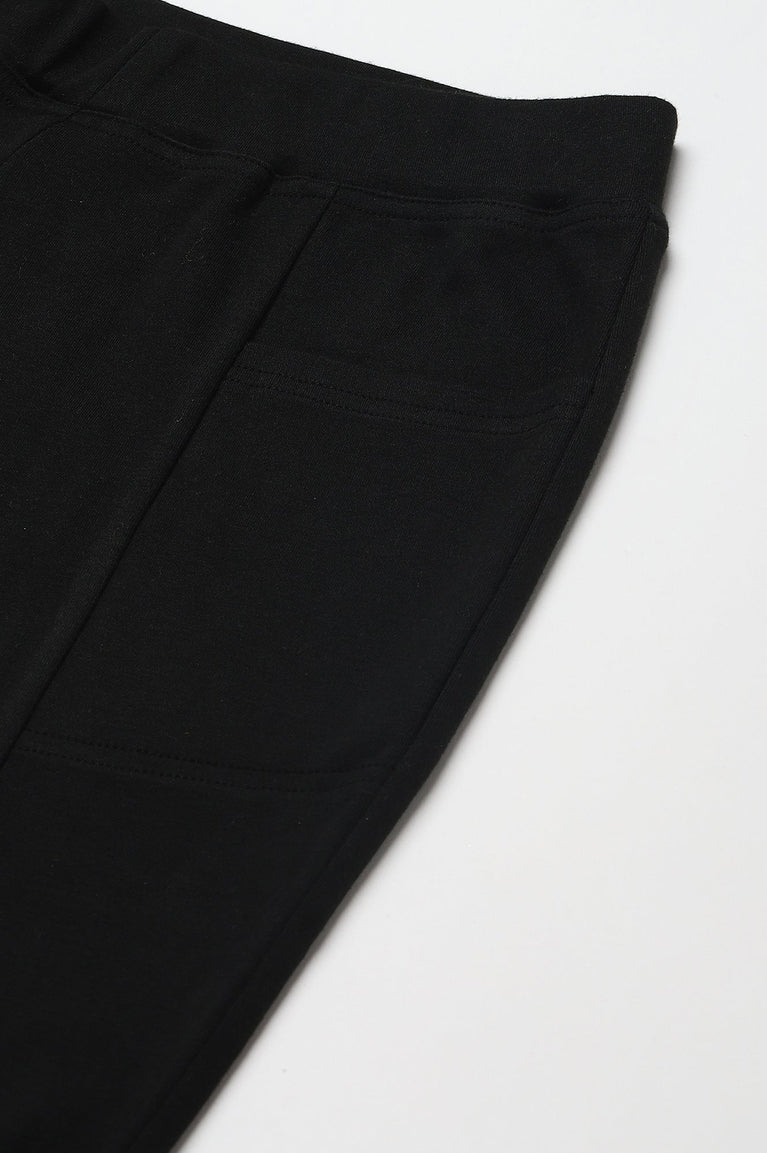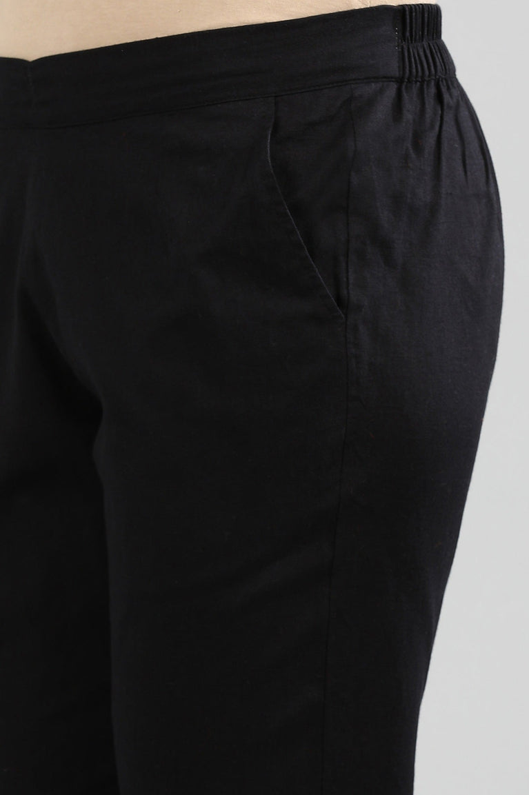Black Solid Straight Fit Rayon Pants With Button Closure