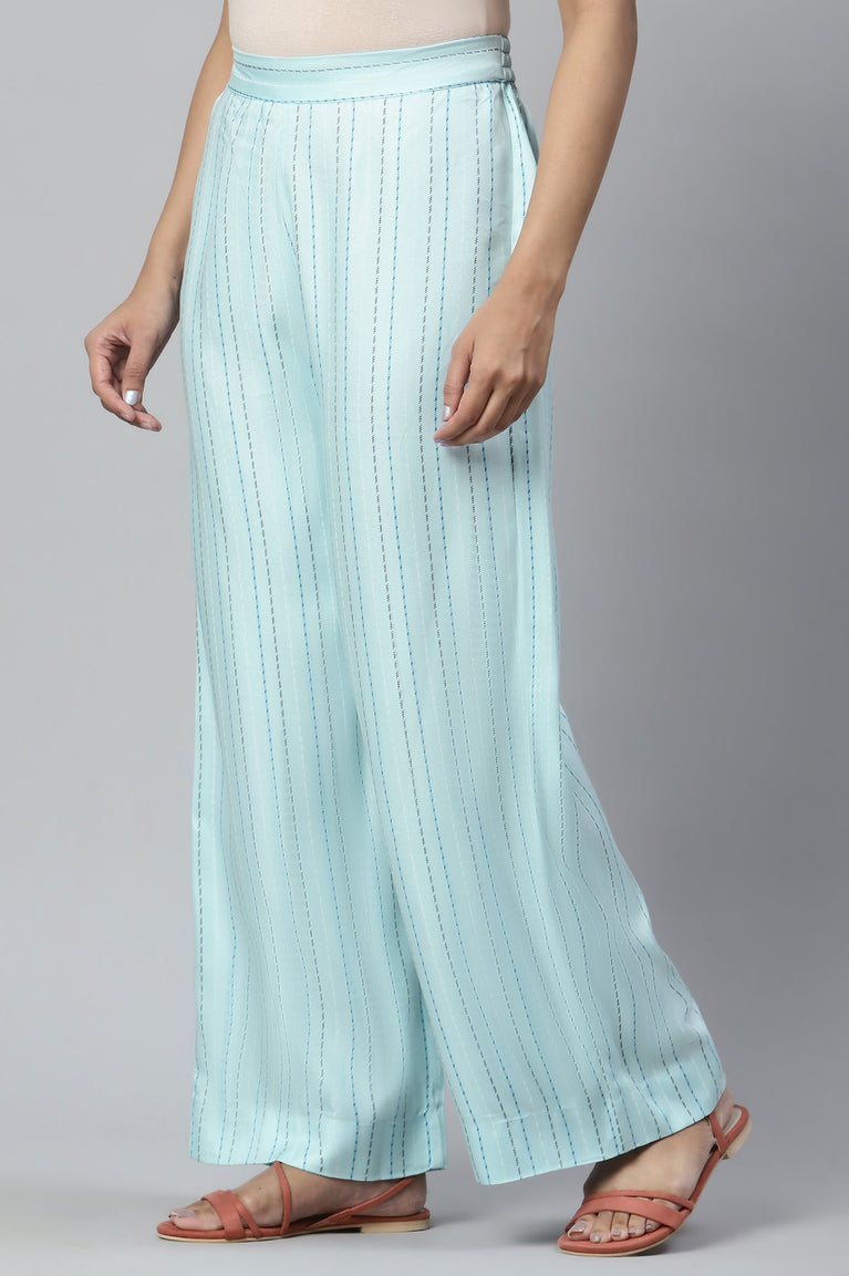 Blue Solid Straight Fit Palazzo With Side Pockets