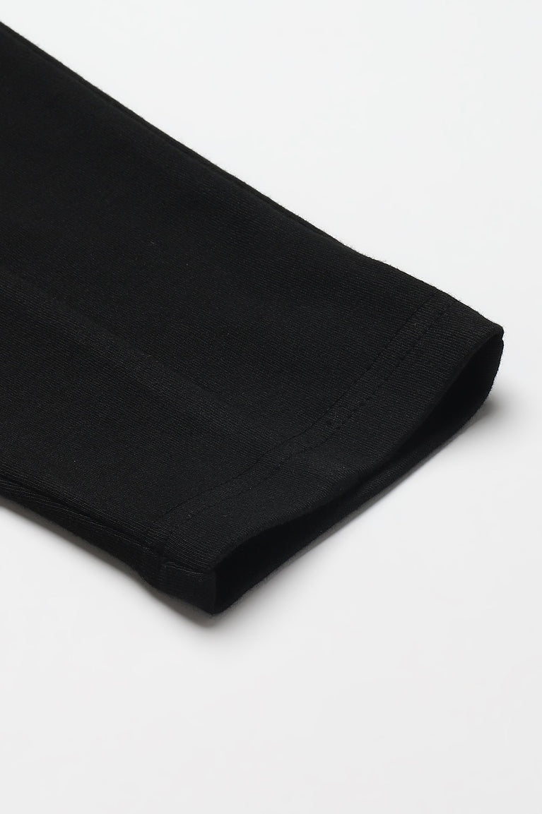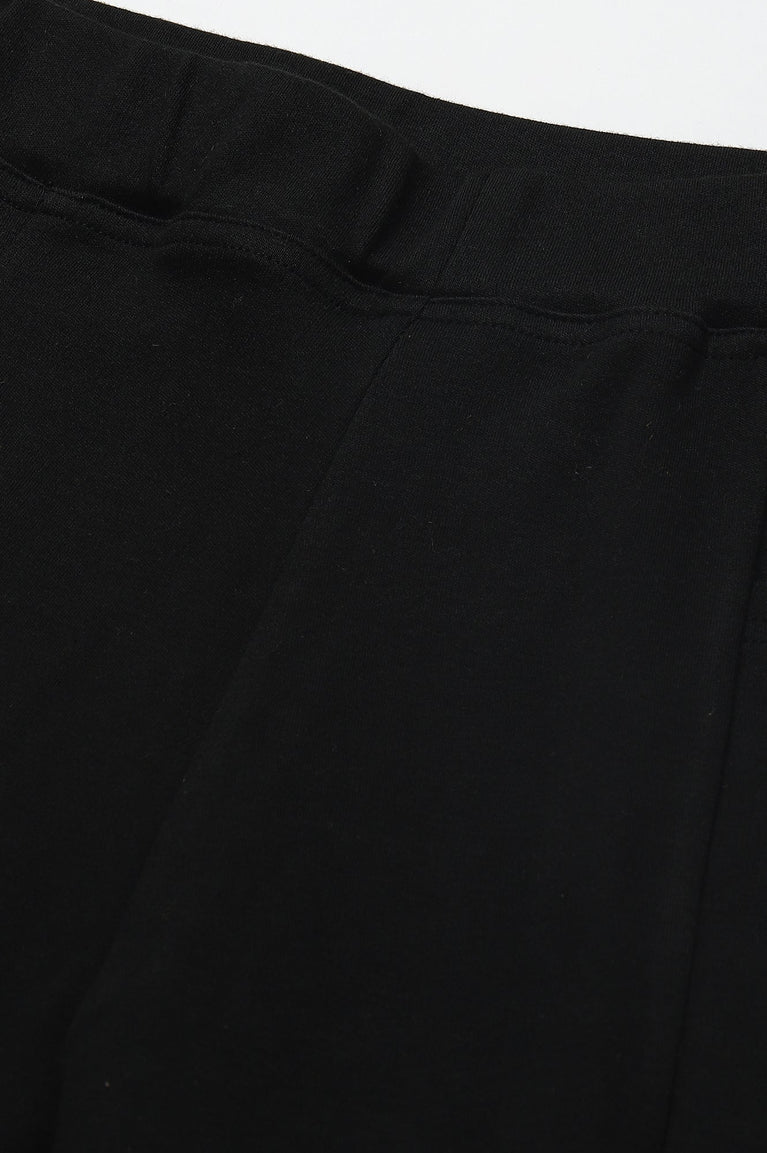 Black Striped Skinny Fit Cotton Tights With High Waistband