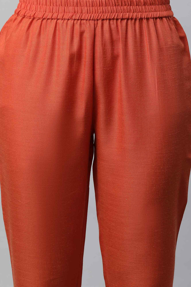 Crafted In Soft And Breathable Cotton Dobby, This Vibrant Tang kurta With A Beautiful Embroidered Yoke Is Definitely A Go-To Choice. This Ensemble Comes With A Contrasting Yellow Cotton Trousers And A Matching Printed Drape.