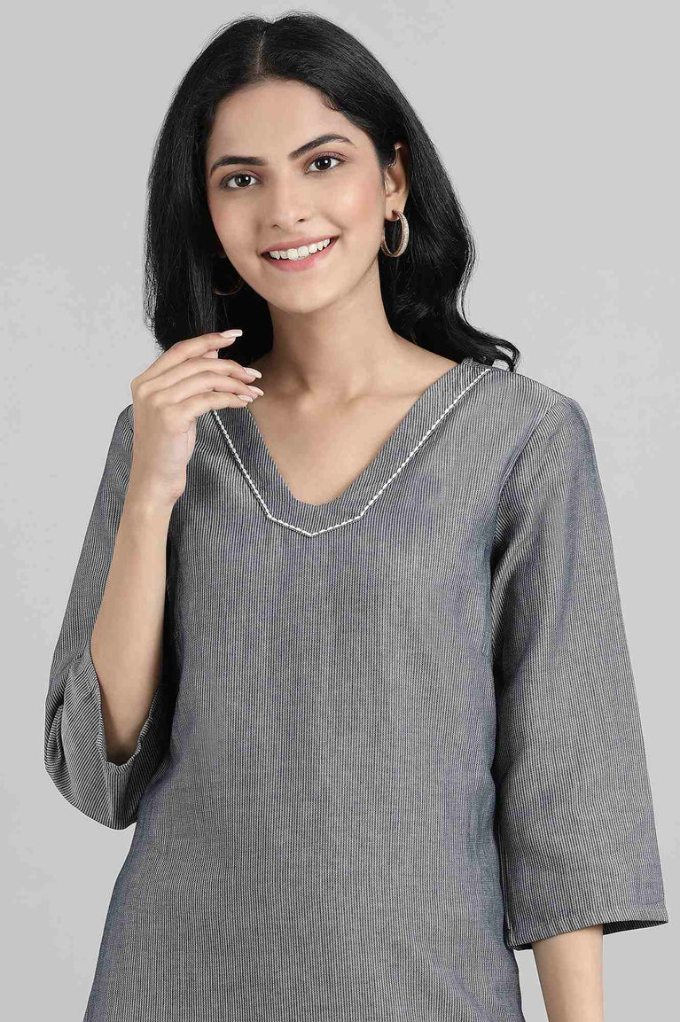 Blue and White Stripe Yarn-Dyed Casual Kurta