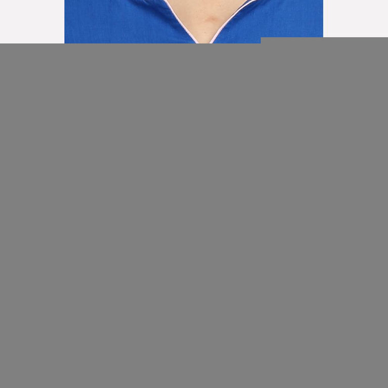 Blue Printed kurta In Mandarin Collar With Button Placket And Three-Quarter Sleeves. Paired With White Solid Palazzo In Mid-Rise And Elasticated Waistband.