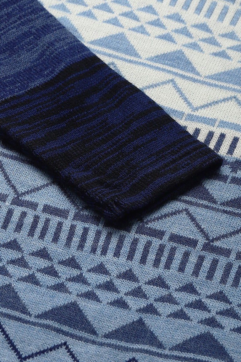 Impactful And Striking, This Is An Engineered Knitted kurta. It Features An Interesting Play Of Ombre In The Base As Well As In The Geometric Motifs. The Sleeves Have Raw Lined Ombre Look To Maintain Continuity.