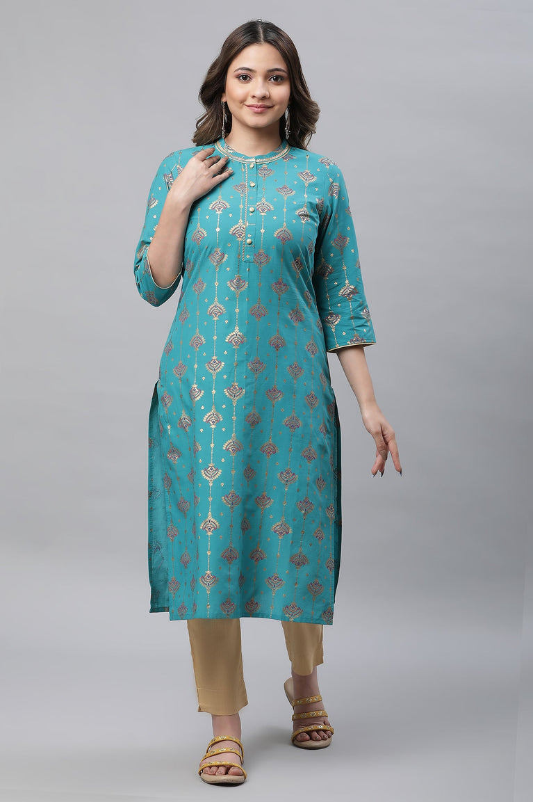 Blue Foil Ornamented Festive Kurta