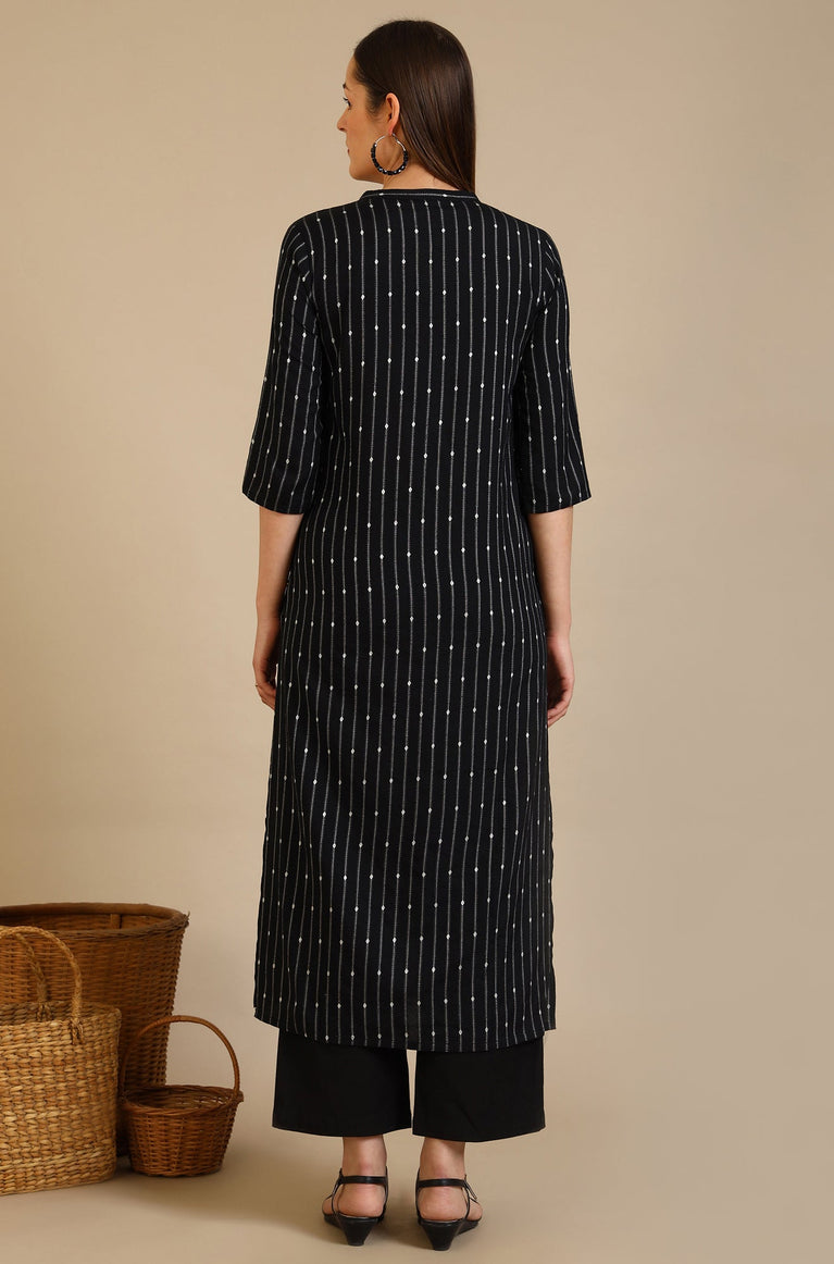 Black Yarn Dyed Striped Straight Kurta