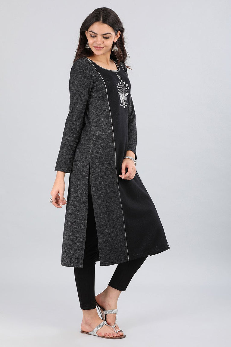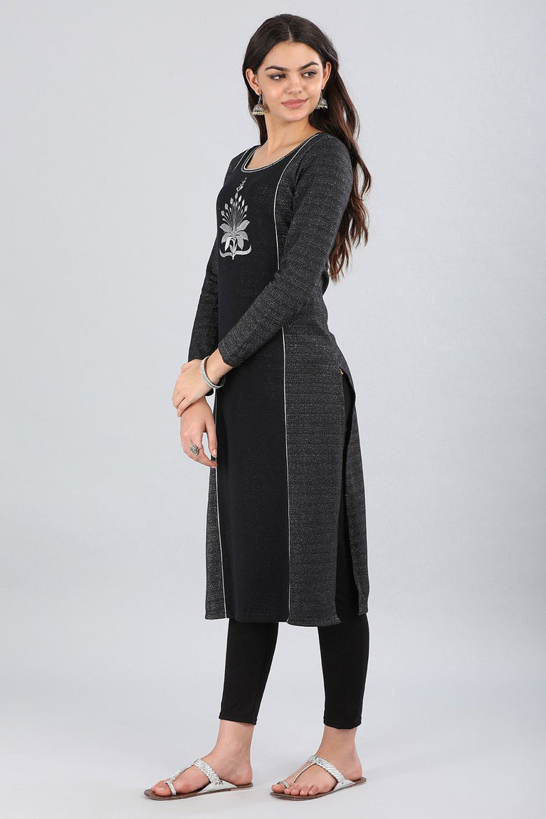 Add a touch of elegance to your wardrobe with this exquisite straight embroidered kurta in textured rayon fabric. The heavy embroidery work with contrasting details on the yoke adds a striking appeal. Its 3/4 sleeves are designed with elastication, giving you the freedom to style them according to your preference.