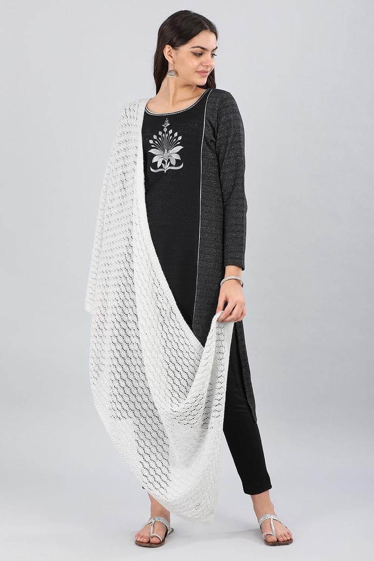 Elevate your casual wear with this fusion-inspired kurta from Aurelia. This mid-calf length piece showcases a perfect blend of traditional and contemporary styles. Crafted using a woven construction technique, the kurta features a comfortable round neckline and practical three-quarter sleeves. The off-white color offers a versatile canvas for various styling options. Made from a cotton blend fabric (87% cotton, 13% nylon), this kurta ensures breathability and ease of movement. The A-line silhouette flatters various body types, while the dori embroidery adds a touch of intricate detailing. Designed for casual wear, this kurta is perfect for everyday elegance. The cotton blend material provides durability and comfort, making it suitable for extended wear. Whether paired with leggings, palazzos, or jeans, this Aurelia kurta offers a chic and effortless look for the modern woman.