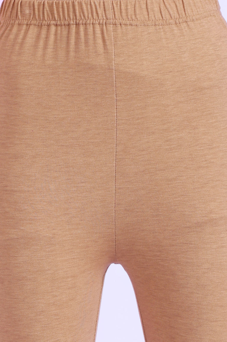 Beige Yarn Dyed Flarred Kurta with Leggings & Stole Set