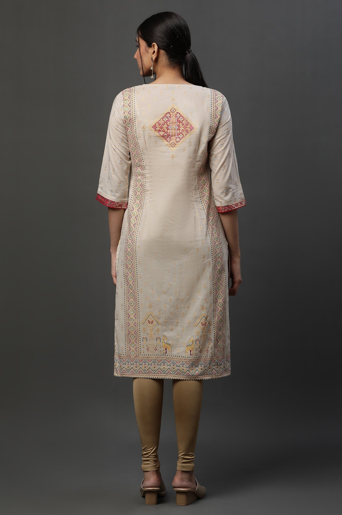 Beige Embellished Festive Kurta