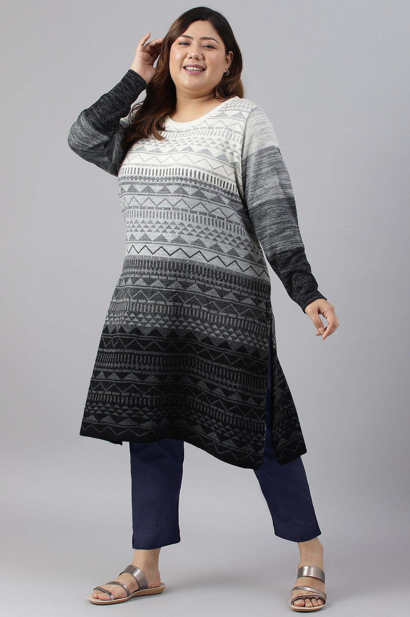 Black Ombre Knitted Winter Plus Size kurta