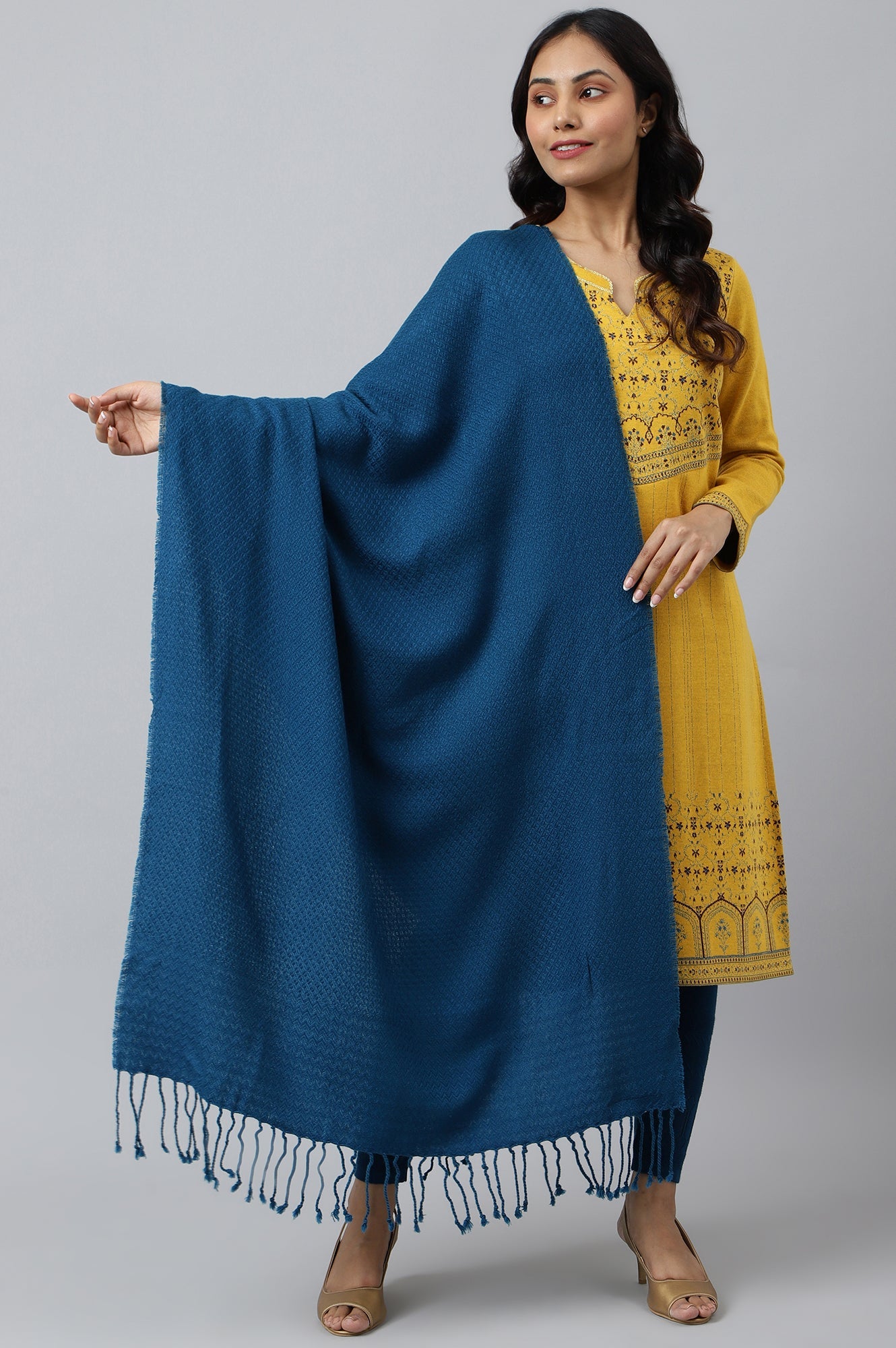 This basic shawl is an absolute must-have to survive in the chilly winters. Its curated in soft acrylic yarns knitted together to create a subtle design. It has fringes at the two ends of the shawls.