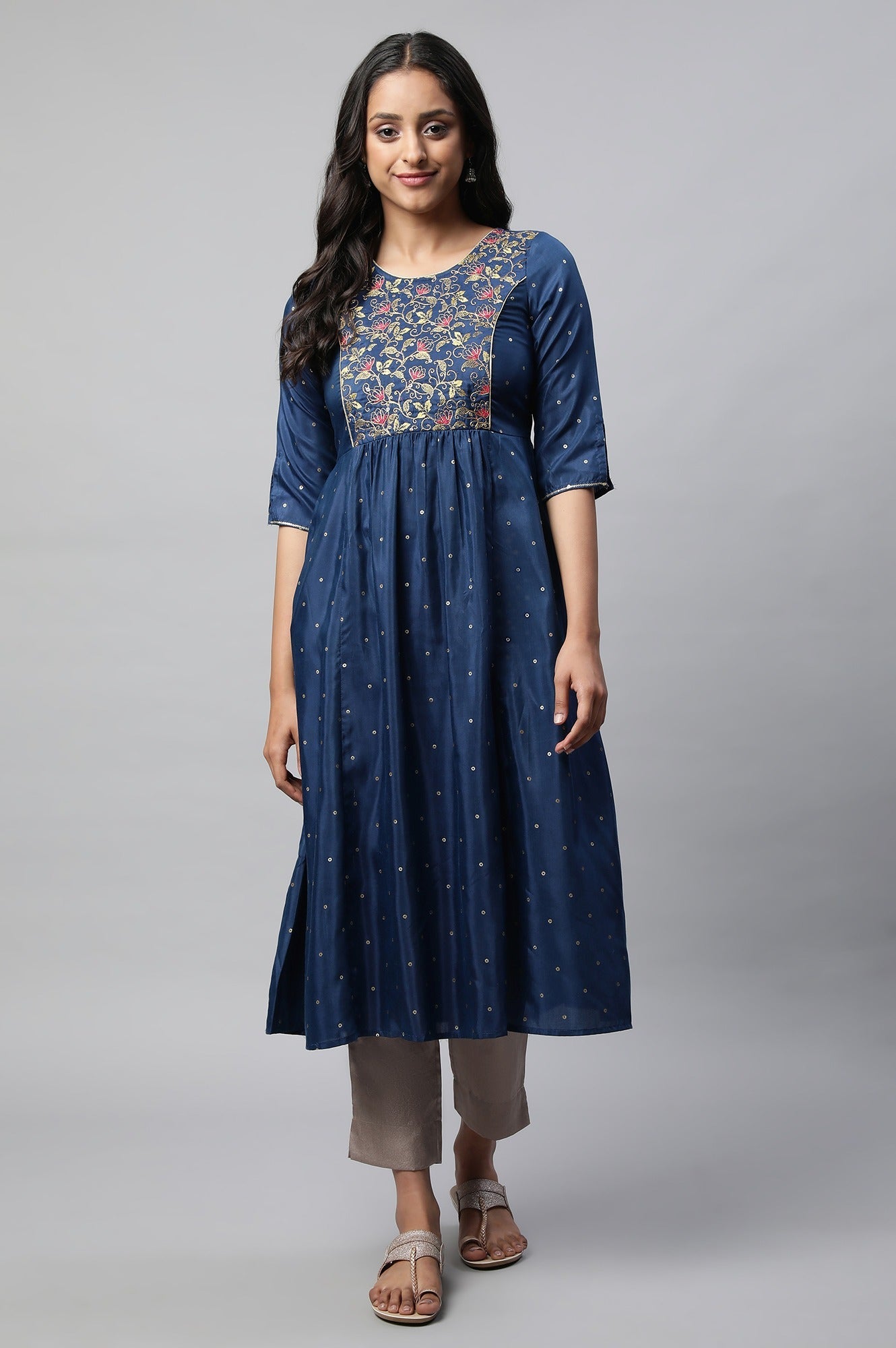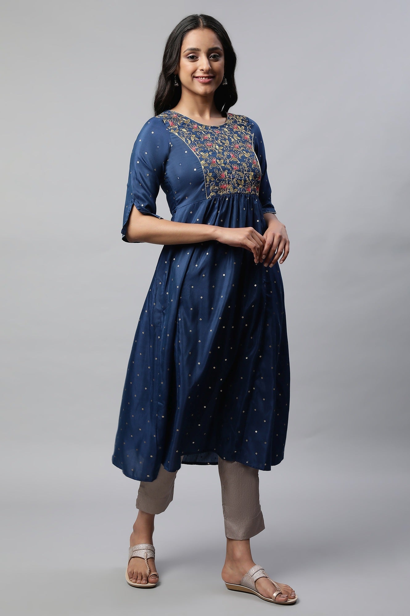 Blue Flared Embroidered kurta