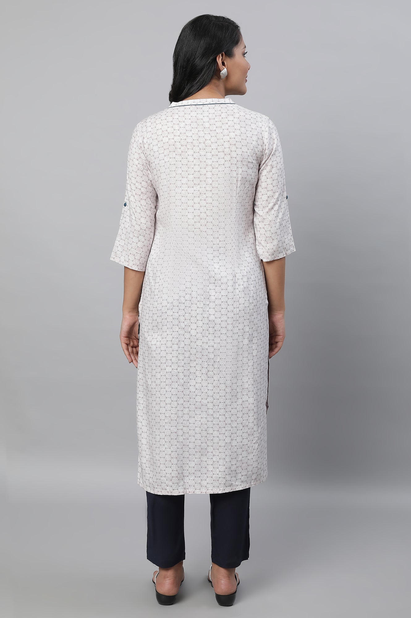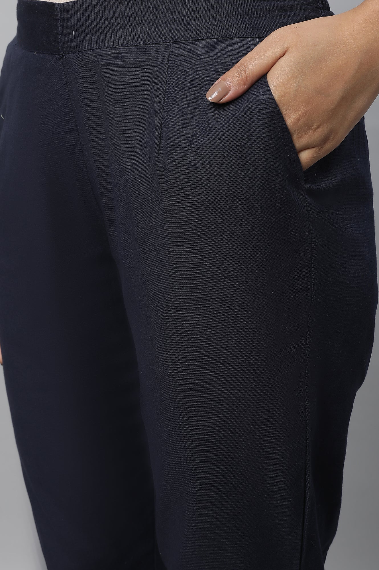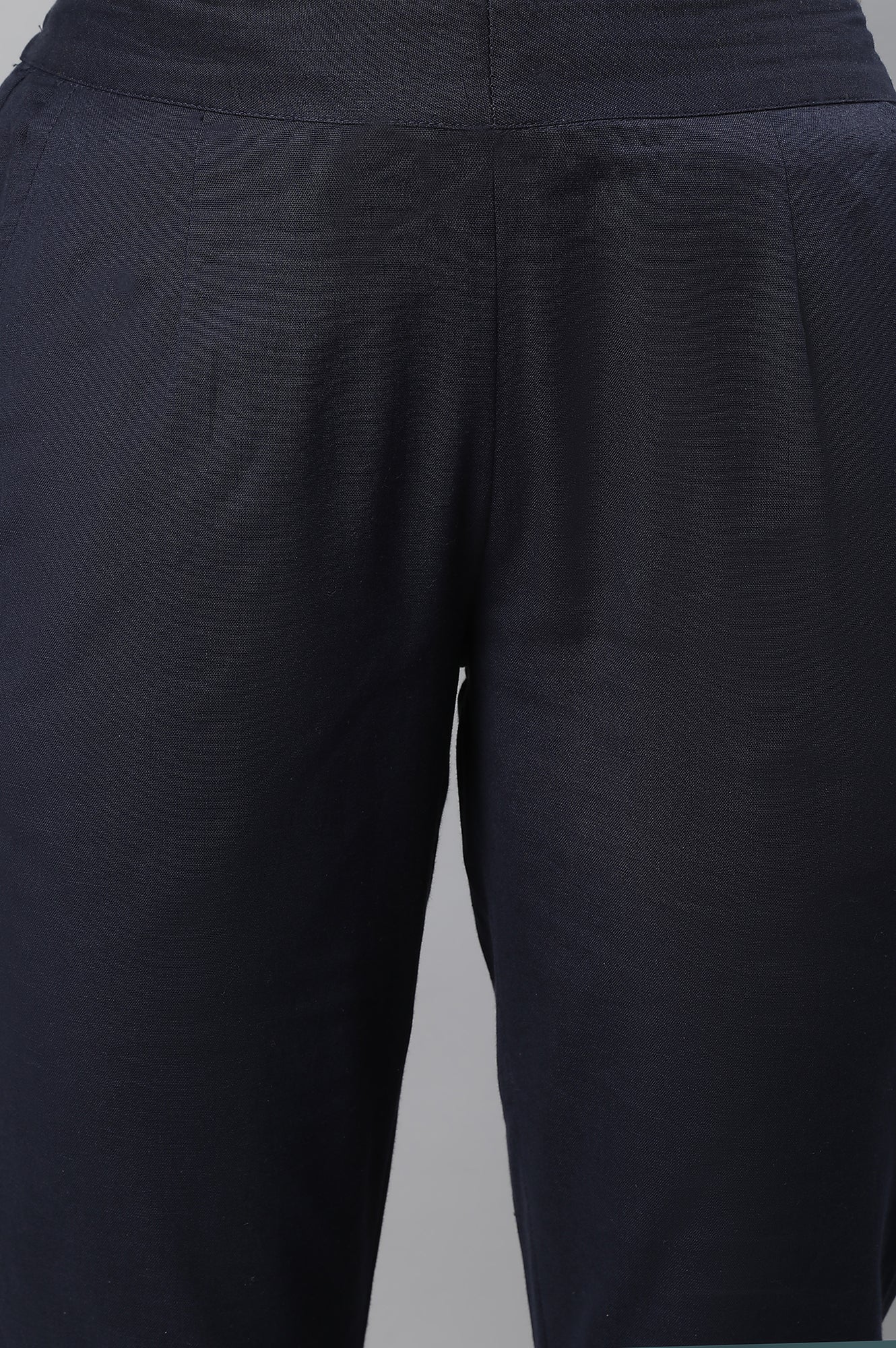 get ready for a brunch date in this chic blue printed kurta set. The set has floral printed straight kurtas in band collar and paired with navy trouser pants.