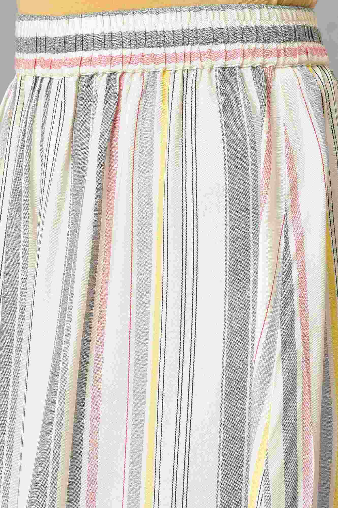 Simple And Timeless, This Rayon Twill Kurta With Flared Culotte Is A Wardrobe Essential. It Comes With A Mandarin Collar Accentuated With Printed Piping Detail And Buttons That Match The Bottom For A Complete Look!