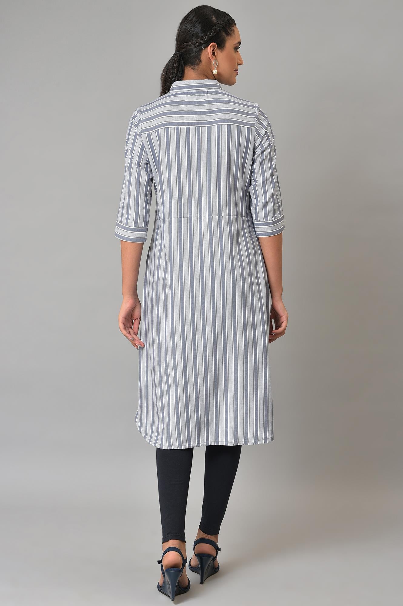 Curated In Breathable Textured Twill, This kurta Is Tailored With Ease For Daily Activities. It Features A Smart Shirt Collar With A Horizontal- Striped Short Placket, Sleeve Cuff And Back Yoke. Throw It On With Our All New White Pin Tuck Trouser In Twill Fabric.