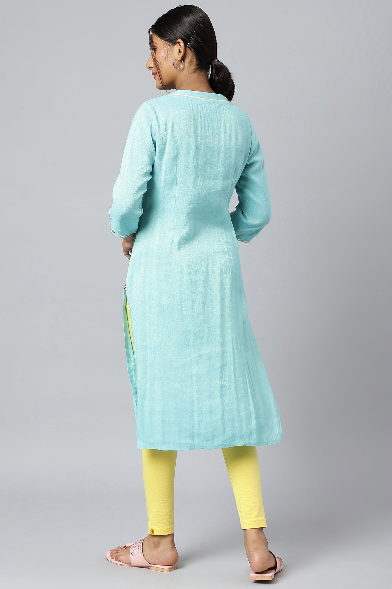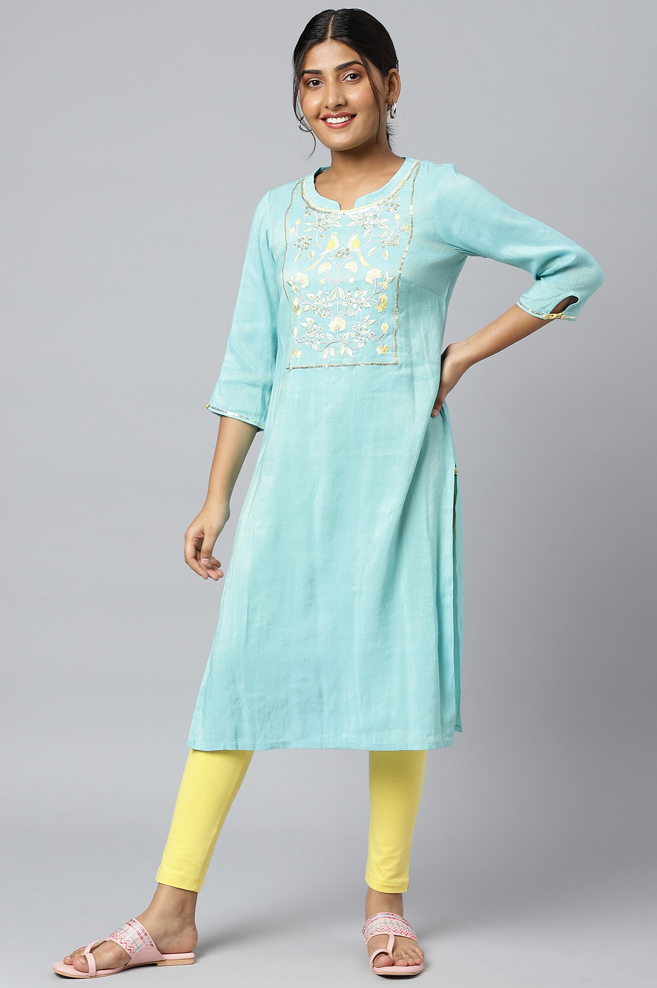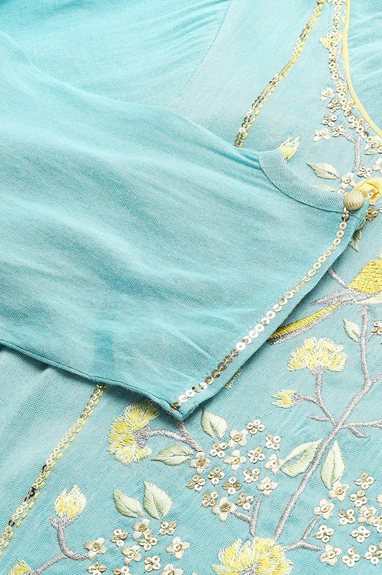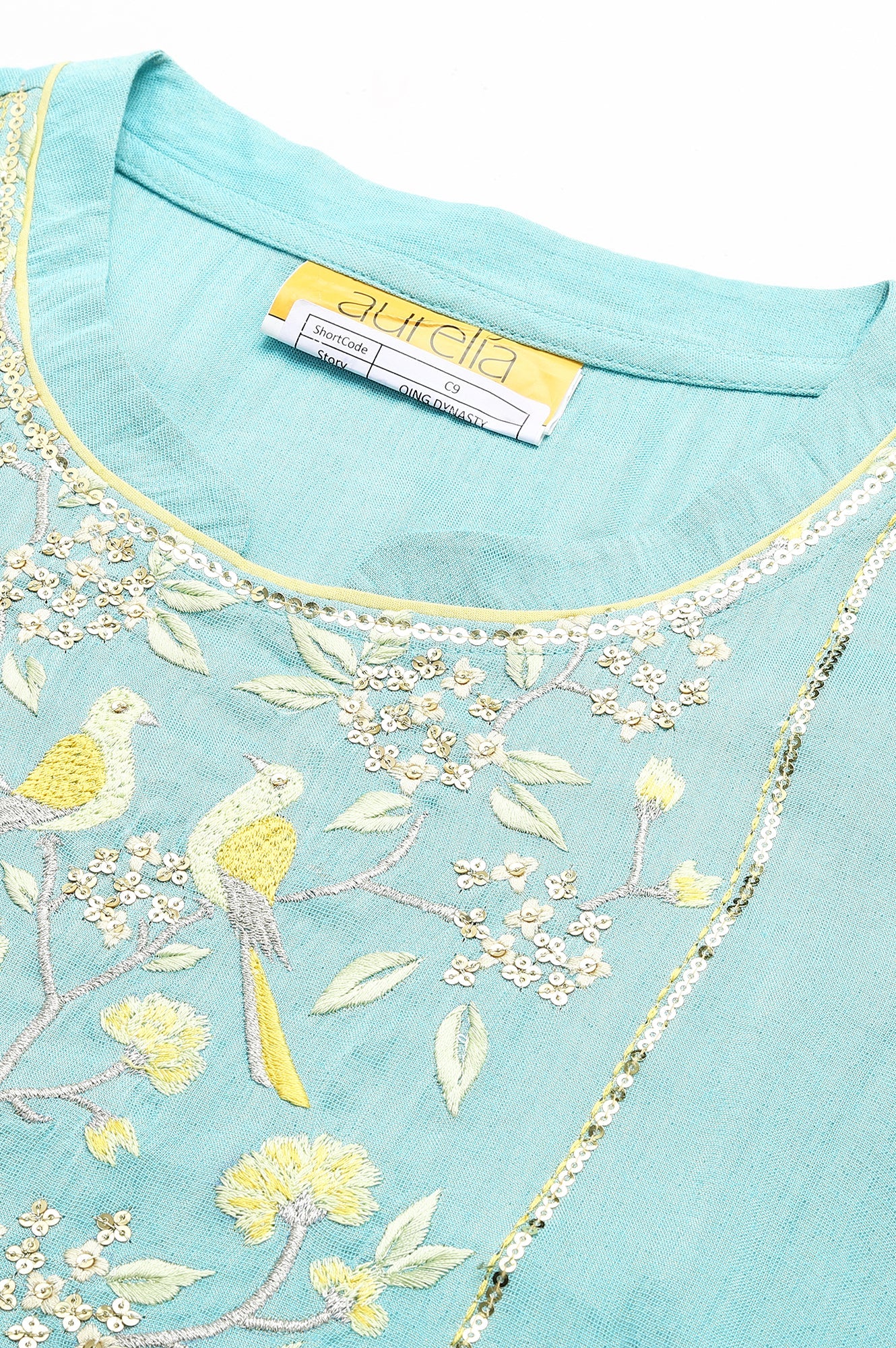 Blue Zari Embroidered Cotton Dobby Plus Size kurta