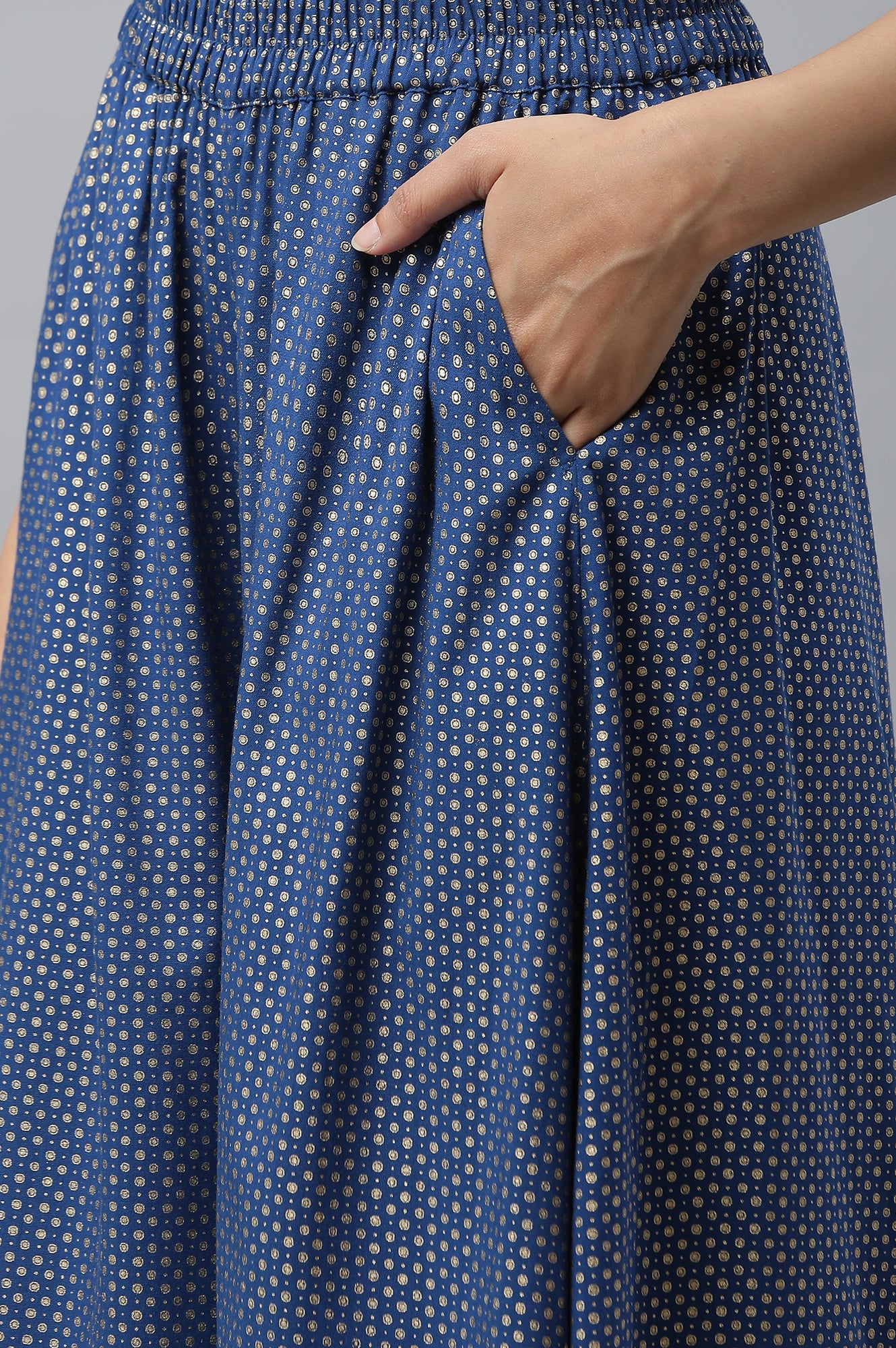 Bright Blue Embellished Kurta, Palazzo and Choker Dupatta