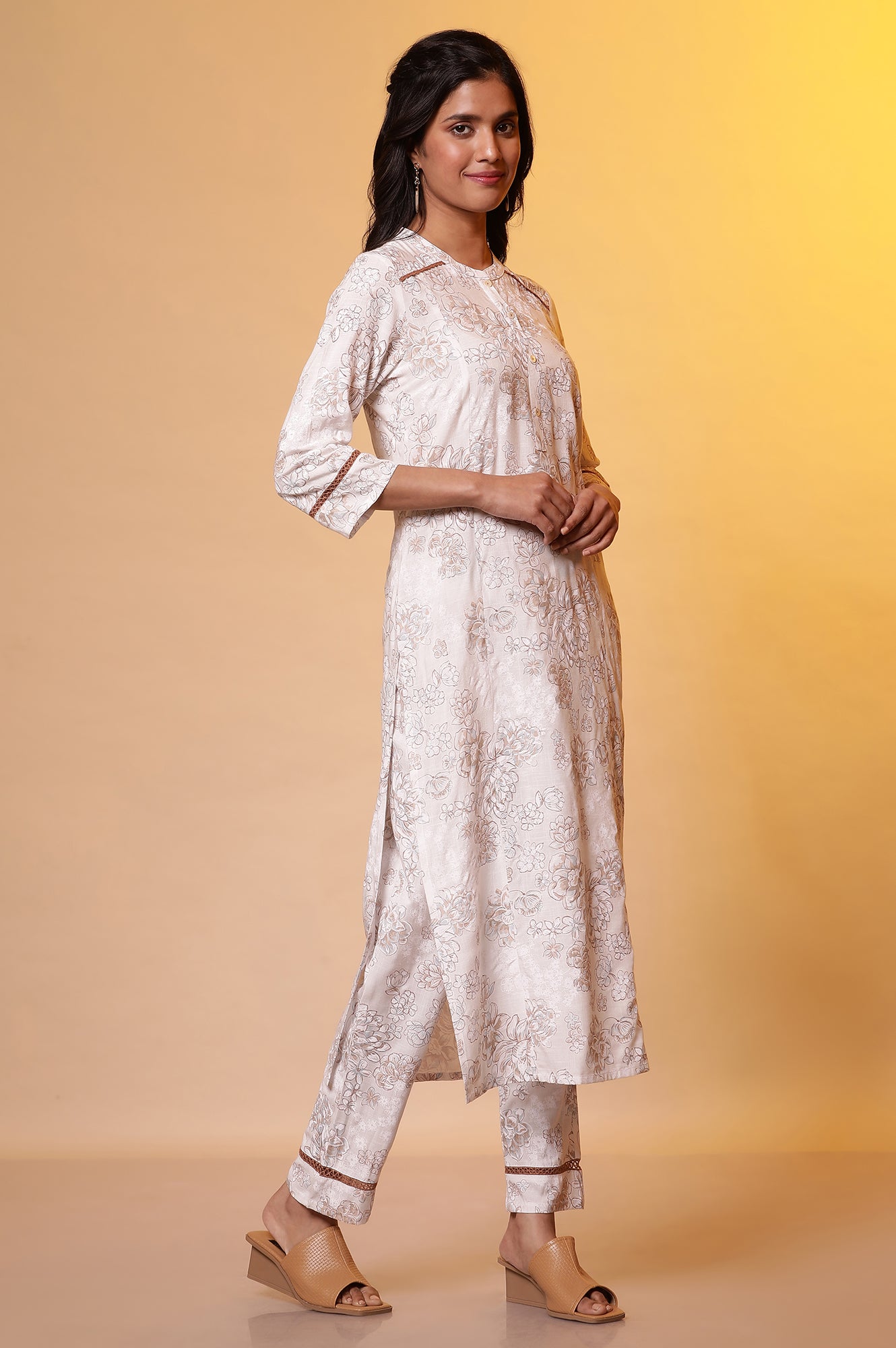 Brown Floral Printed Kurta and Palazzo Co-ord Set