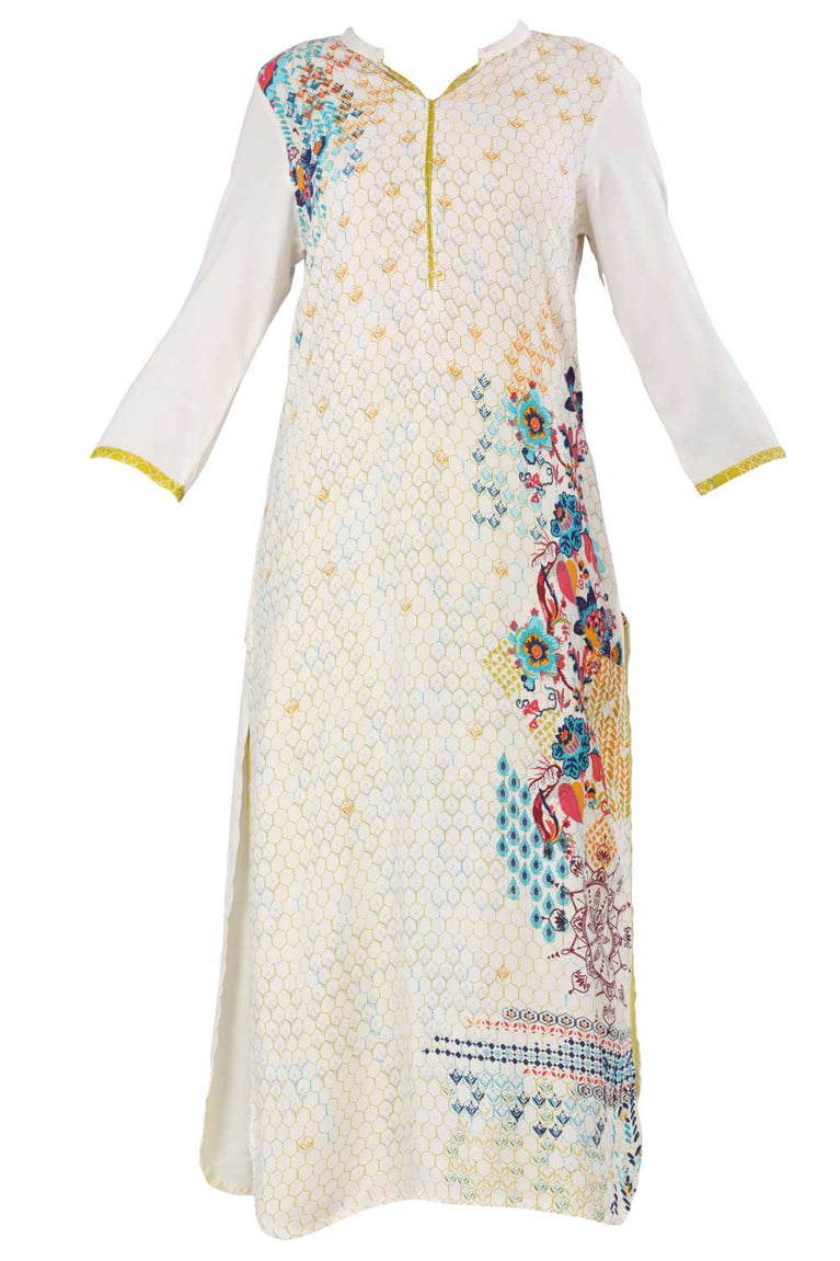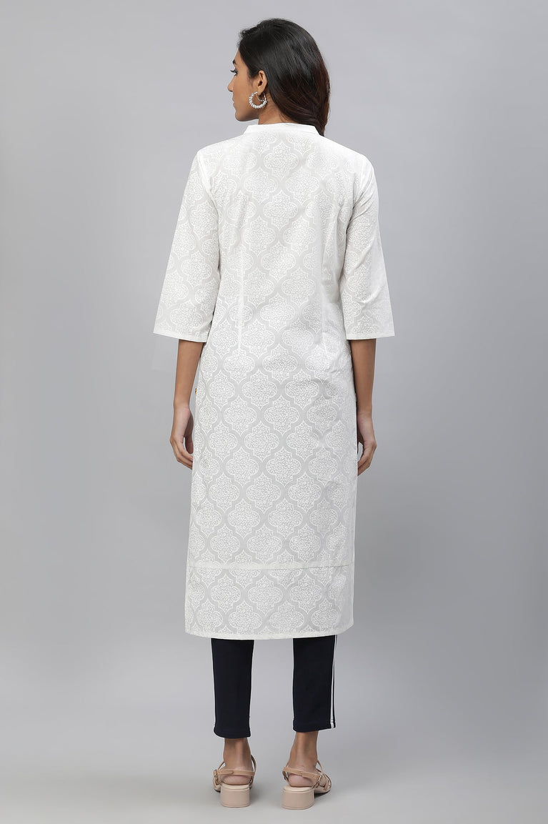 White Floral Motif Straight Kurta