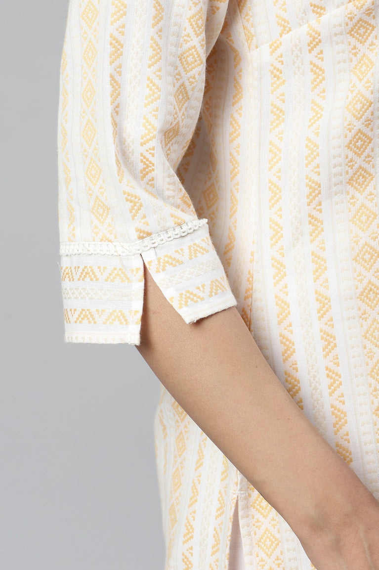 Yellow Yarn Dyed Straight Cotton Blend Kurta