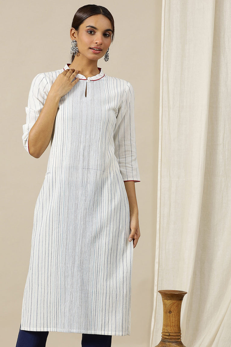 Give Your Everyday Look An Elegant Touch With This Simple And Classy Aurelia'S White Straight kurta. It Has Straight Silhouette With Round Neckline With Button Closure