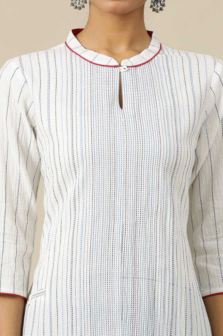 White Geometric Printed Pure Cotton Soft & Breathable Kurta in Mandarin Collar