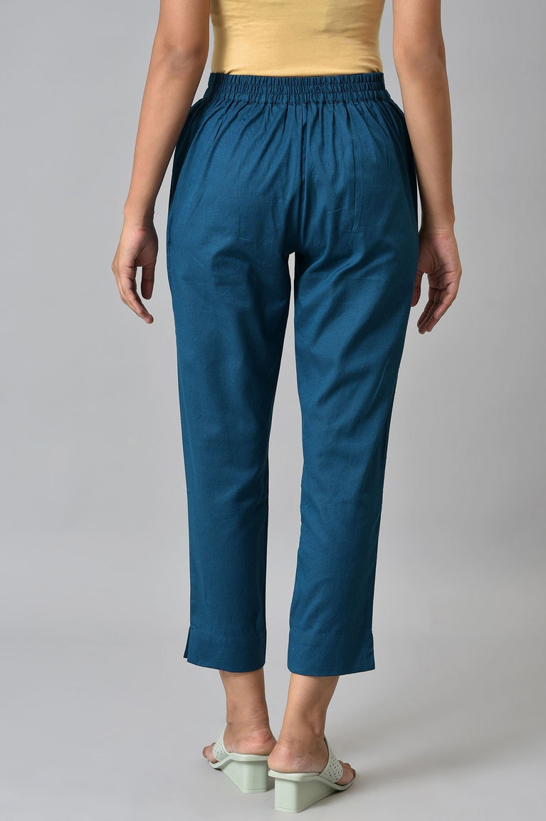 Flaunt Your Stylish Look In This Chic Aurelia Set. The Set Includes Blue Floral Printed kurta In Cuff Sleeves. It Is Paired With Red Trousers And Printed Dupatta.