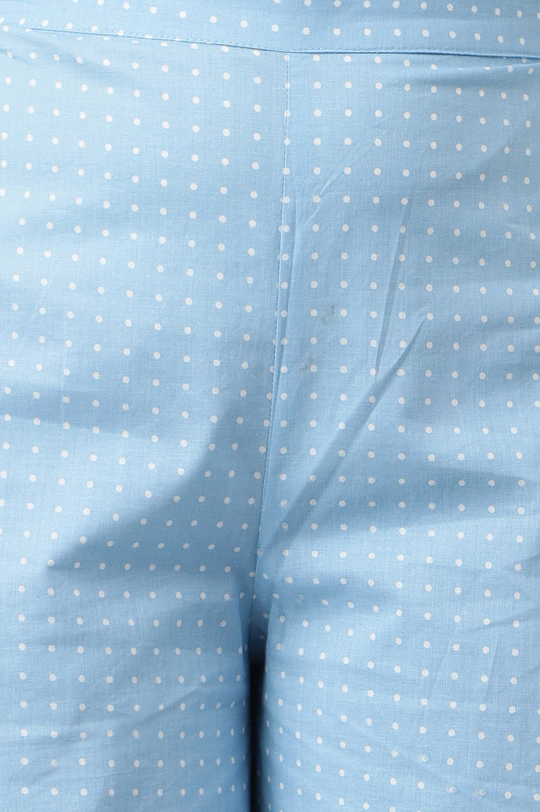 Blue Yarn Dyed Cotton Blend Straight Kurta and Palazzo Set