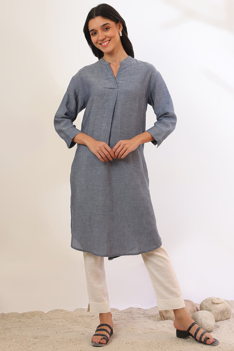 Blue Yarn Dyed Straight Kurta
