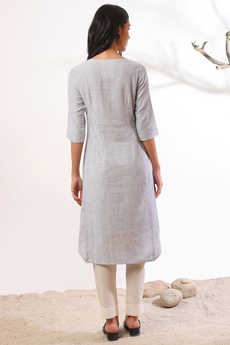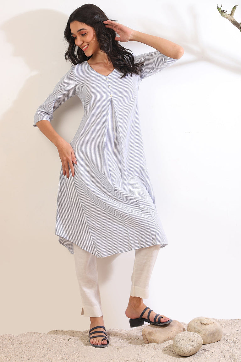 Blue Yar-Dyed Stripe Kurta and Trouser Pants