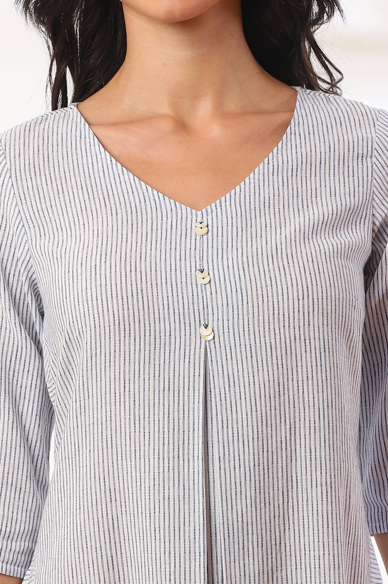 Blue Lurex Crepe Stripe Short Kurti