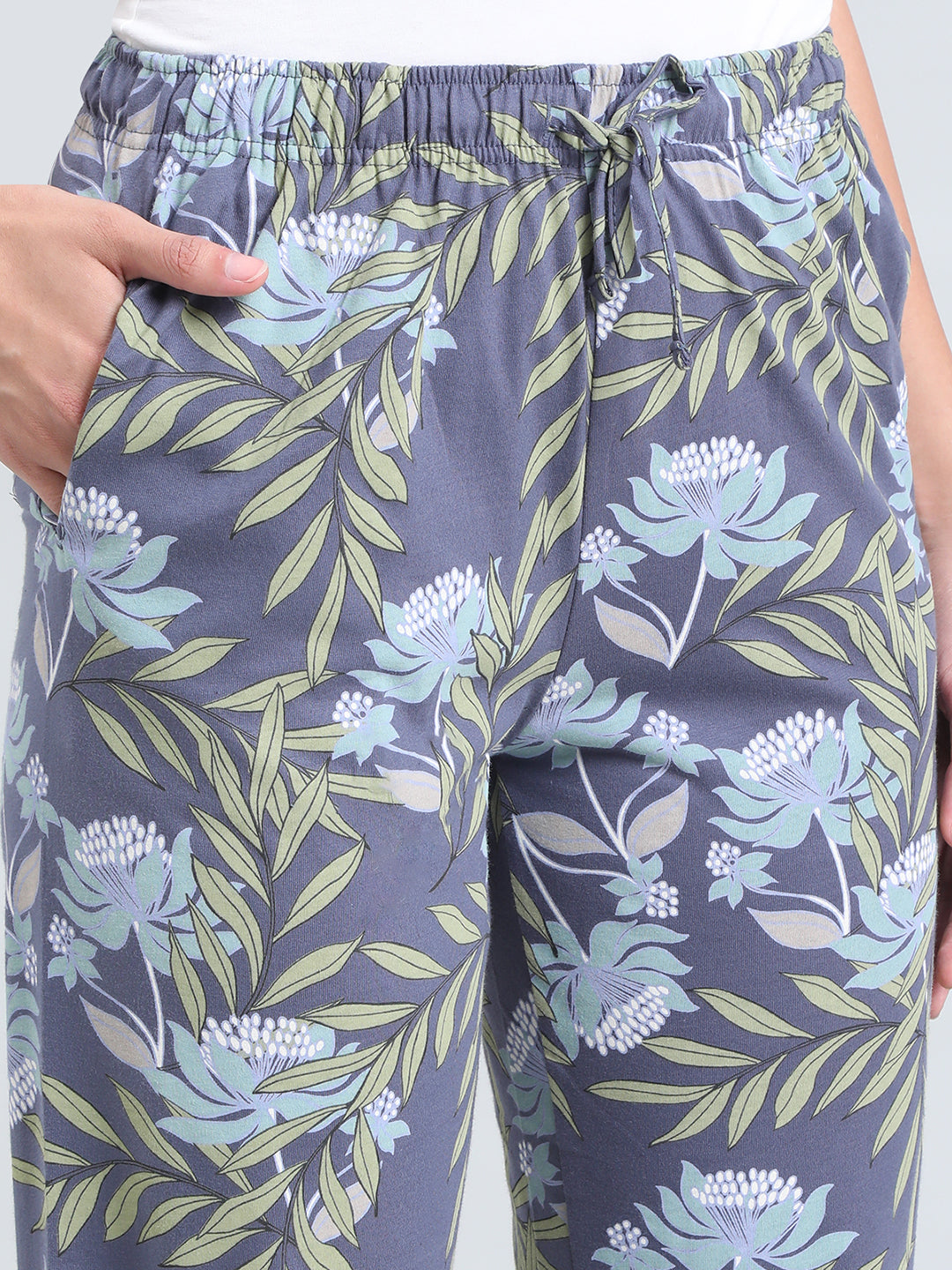 Look chic while lounging in our Printed Cotton Lounge Pants. Made from cotton, it has a elasticised waistband with drawstring closure, slant pockets & is extremely light weight