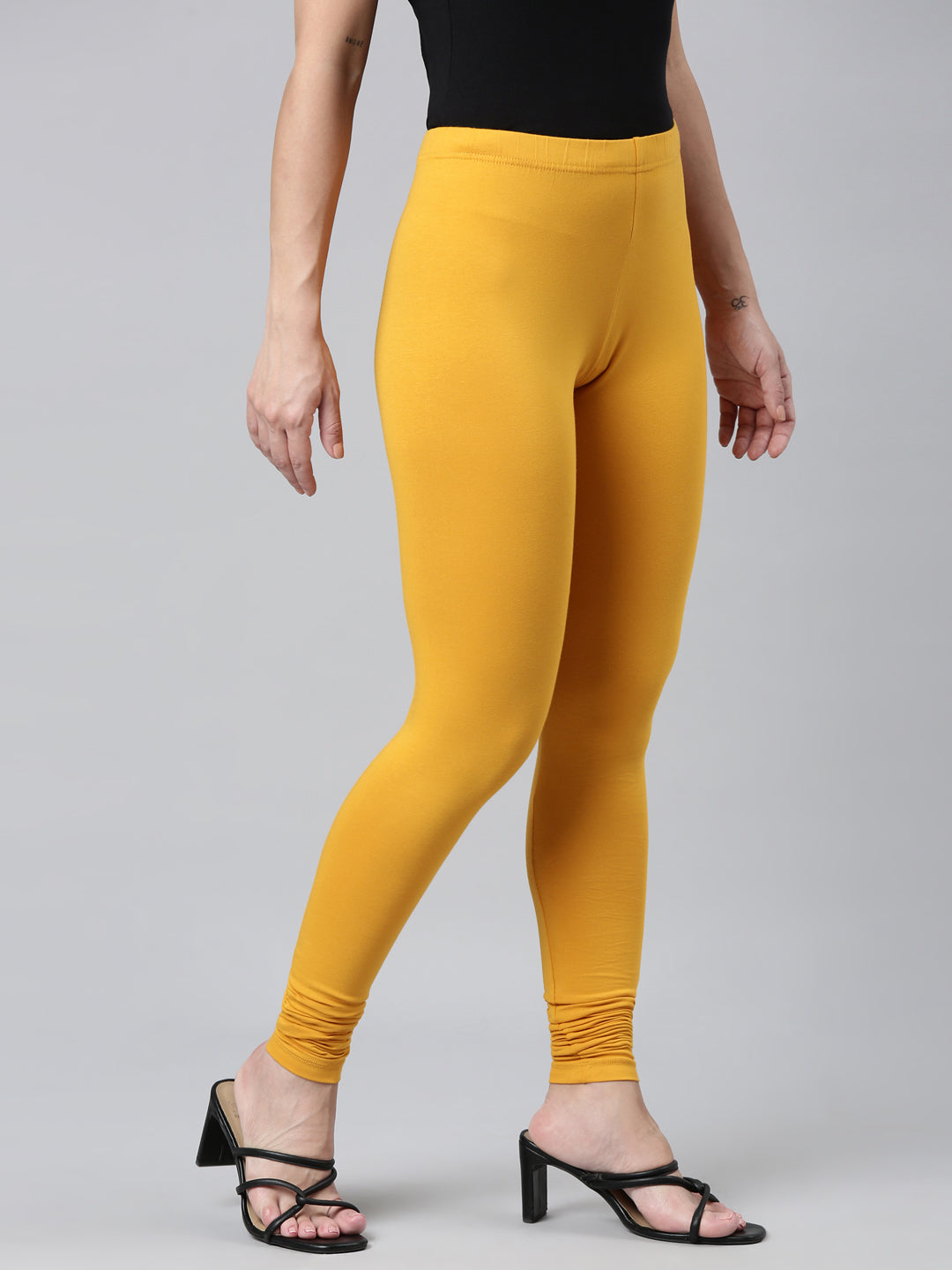 Go chic with a pair of Bright Mustard Solid Churidar Leggings. Made from high quality cotton, it has a elasticised waistband & gathers at the hemline.