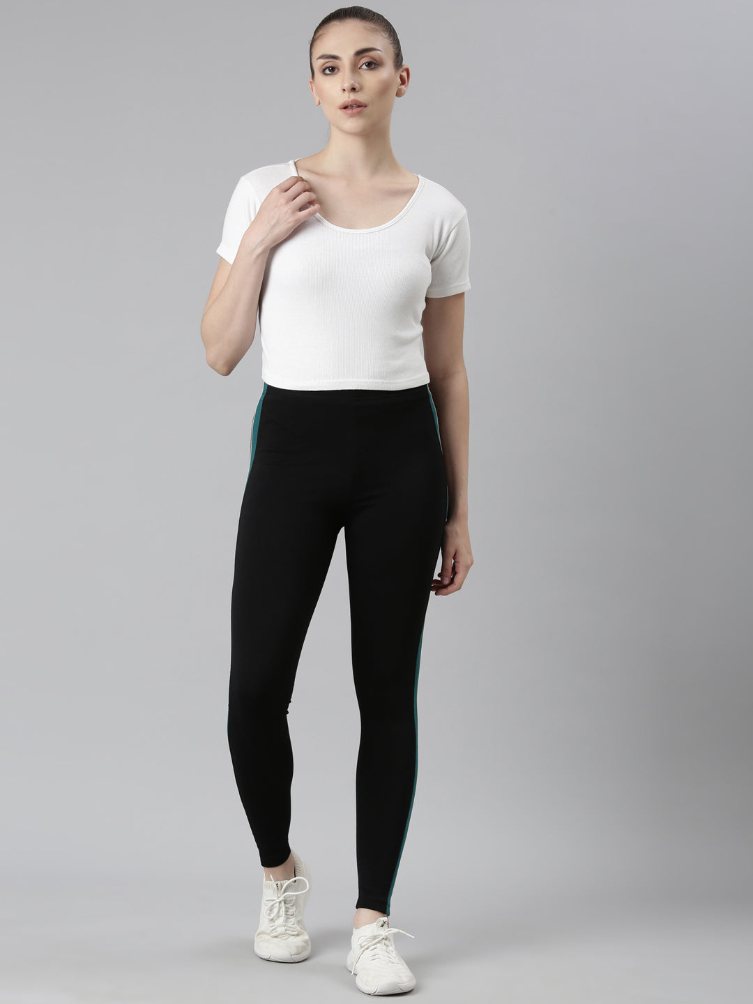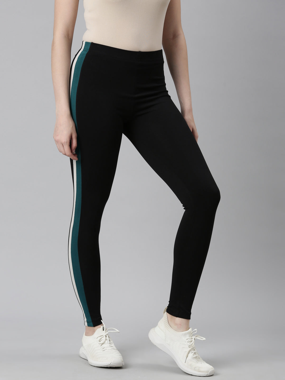 Black Cotton Stretch Side Stripes Active Leggings