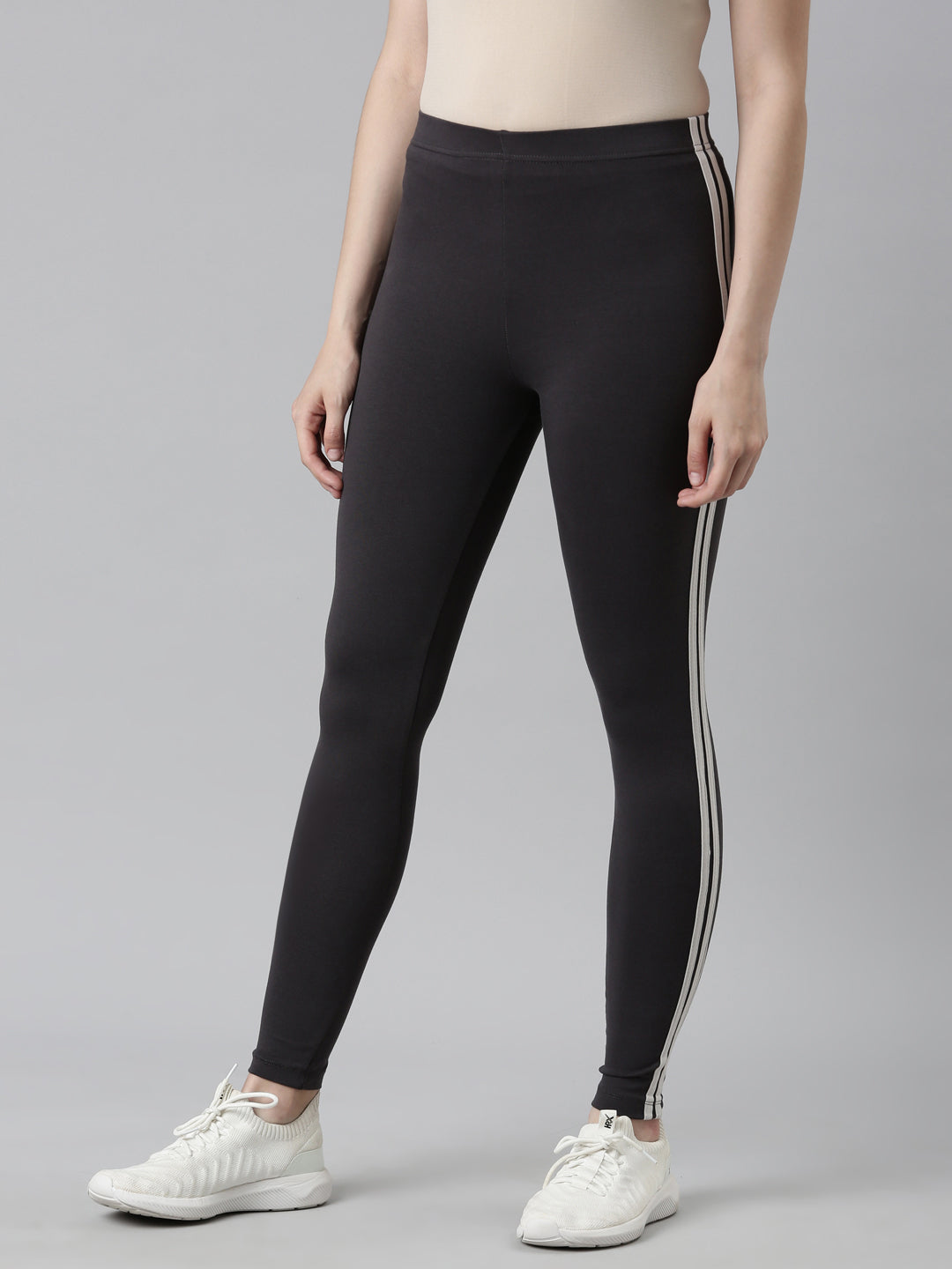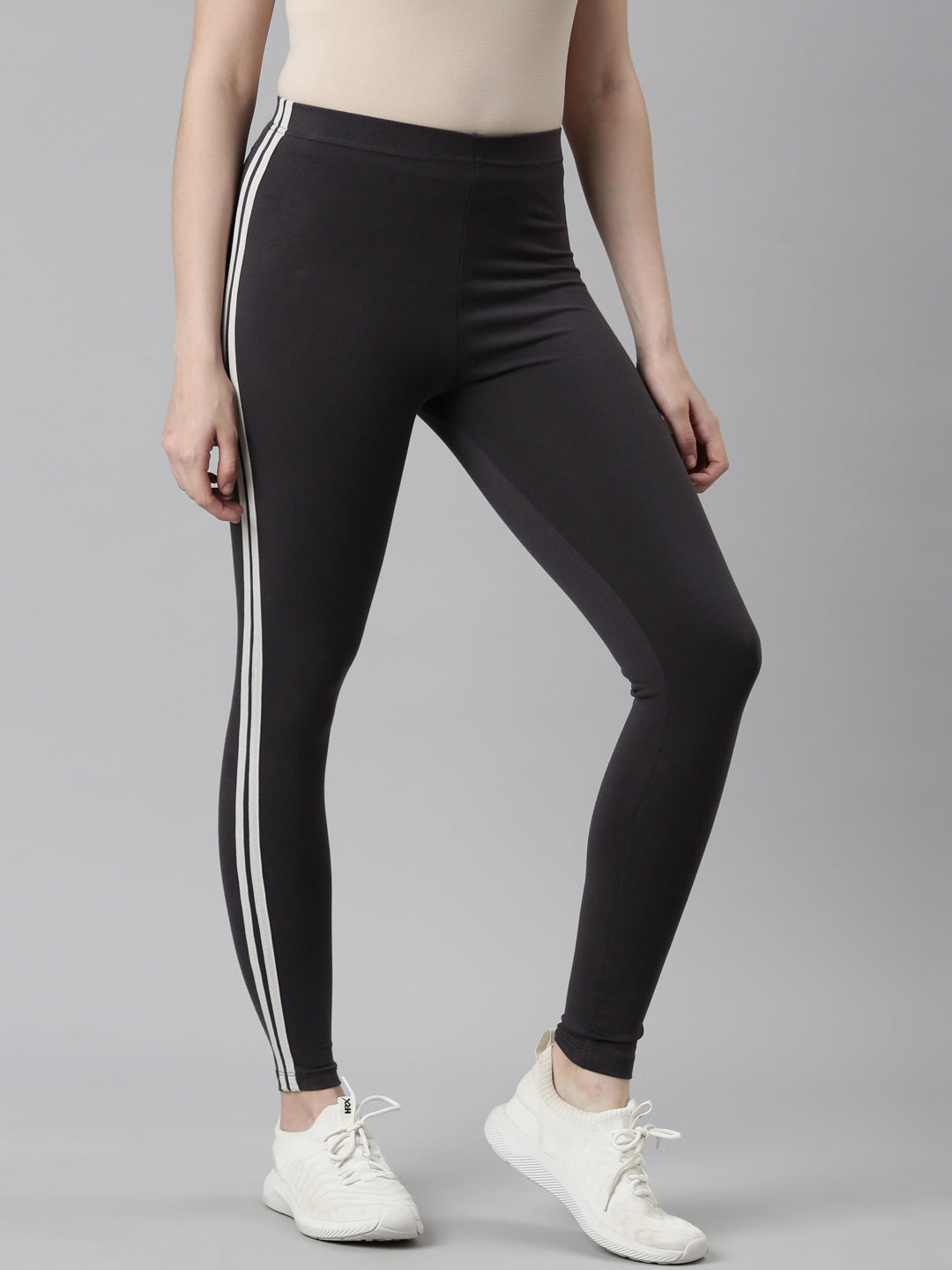Bringing your A-game to any fitness regime with our comfortable Grey Solid Side Stripe Active Leggings. Made from cotton stretch fabric, it has a elasticised waistband & a contrast side striped panel for a sporty look.
