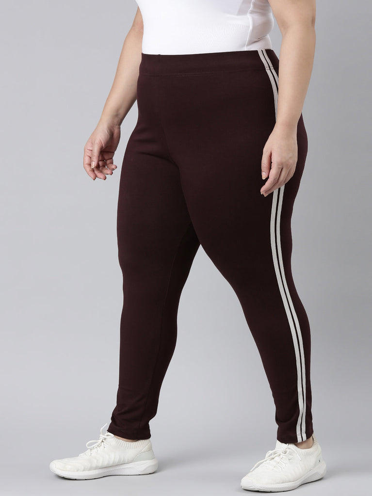 Bringing your A-game to any fitness regime with our comfortable Brown Solid Side Stripe Active Leggings. Made from cotton stretch fabric, it has a elasticised waistband & a contrast side striped panel for a sporty look.