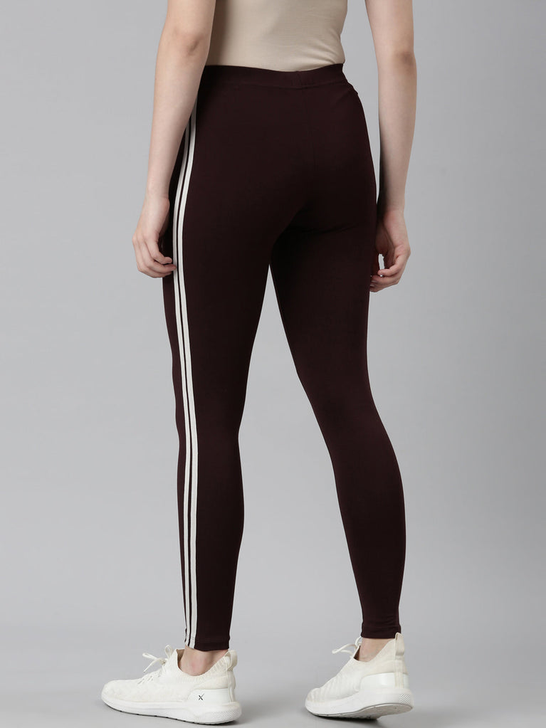 Brown Cotton Stretch Side Stripes Active Leggings