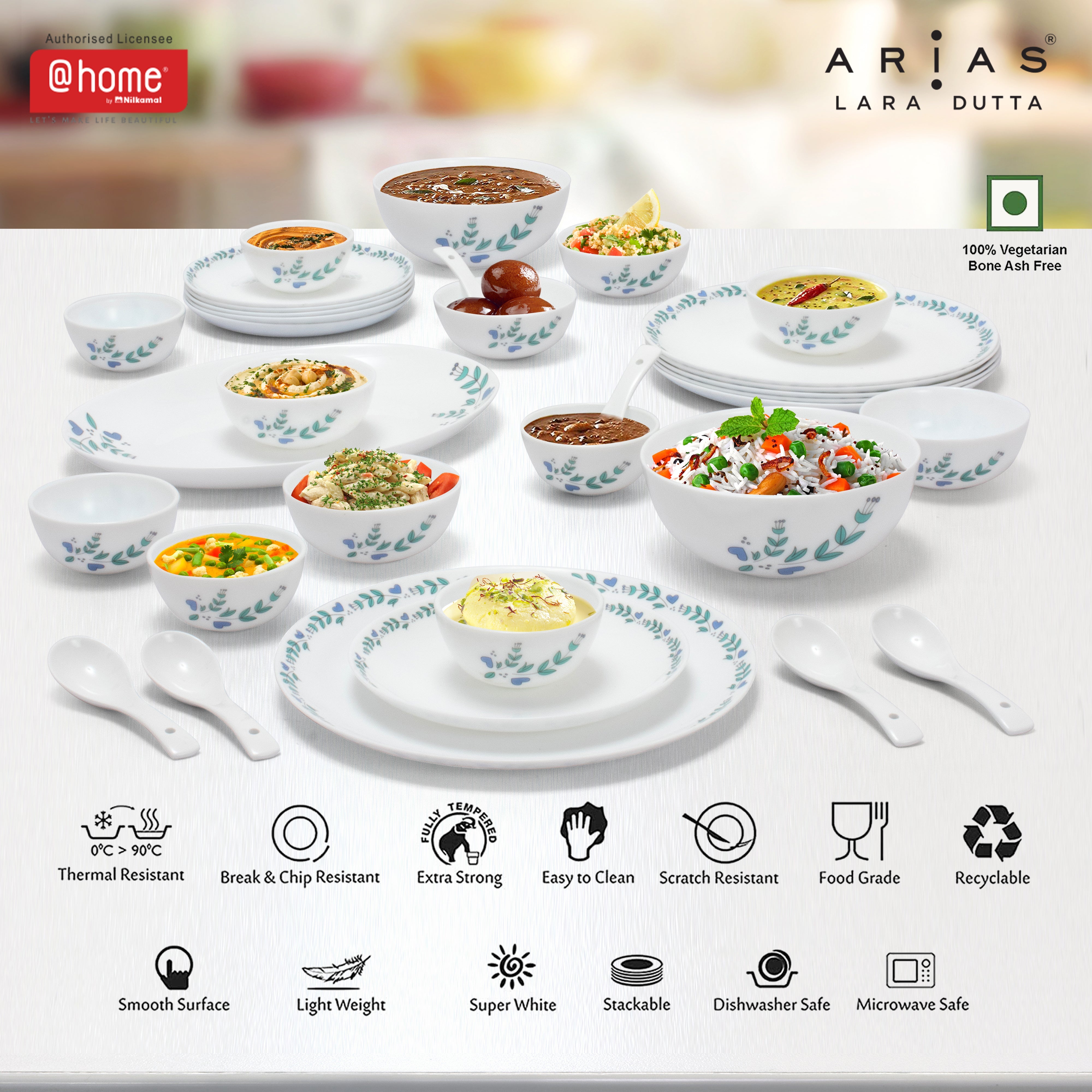 Arias by Lara Dutta Moon Morning Glory Dinner Set - 33 Pieces